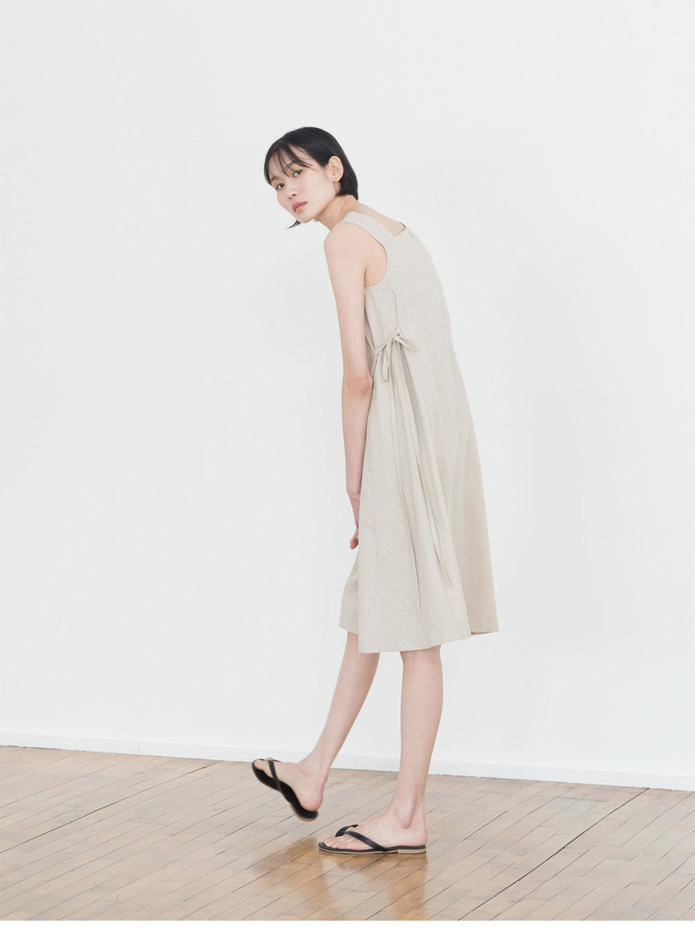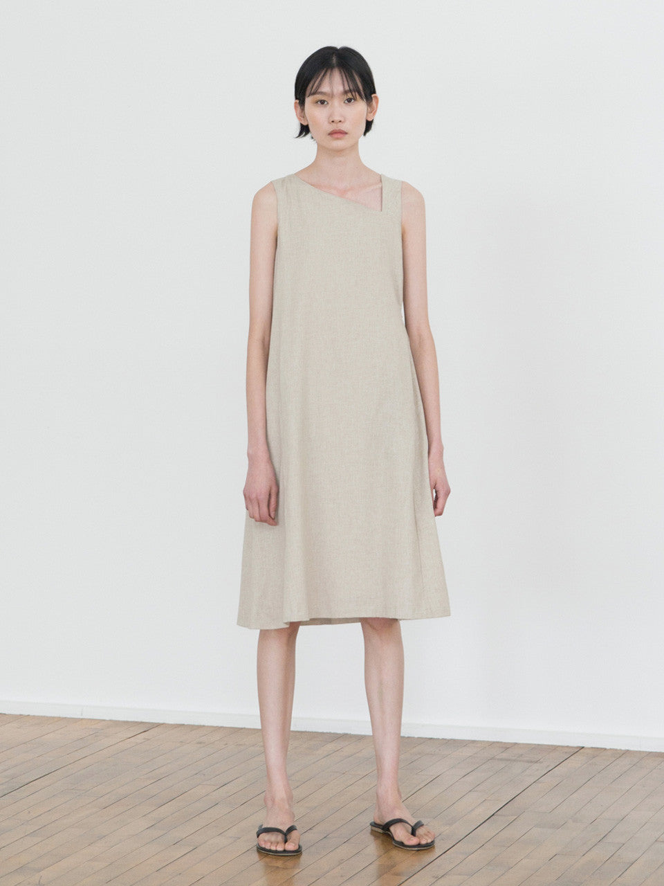 This sleeveless A-line midi dress by Laura Ren is a refined expression of modern elegance, crafted from breathable natural linen. The dress features an asymmetric neckline for a contemporary twist on a timeless silhouette, while its minimalist cut flatters the body with effortless grace. Designed for warm-weather sophistication, this lightweight linen piece ensures comfort without compromising on style. Ideal for upscale casual events, resort wear, or everyday refinement, it pairs perfectly with sandals or slides. A versatile wardrobe essential for the discerning woman, the Laura Ren linen dress blends artisanal quality with minimalist luxury for an elevated seasonal look.