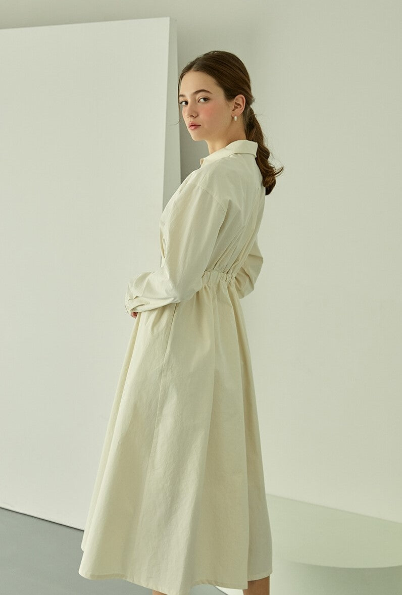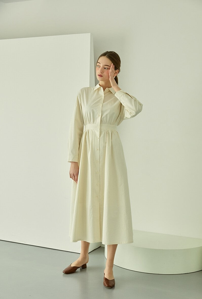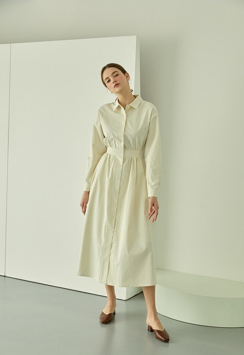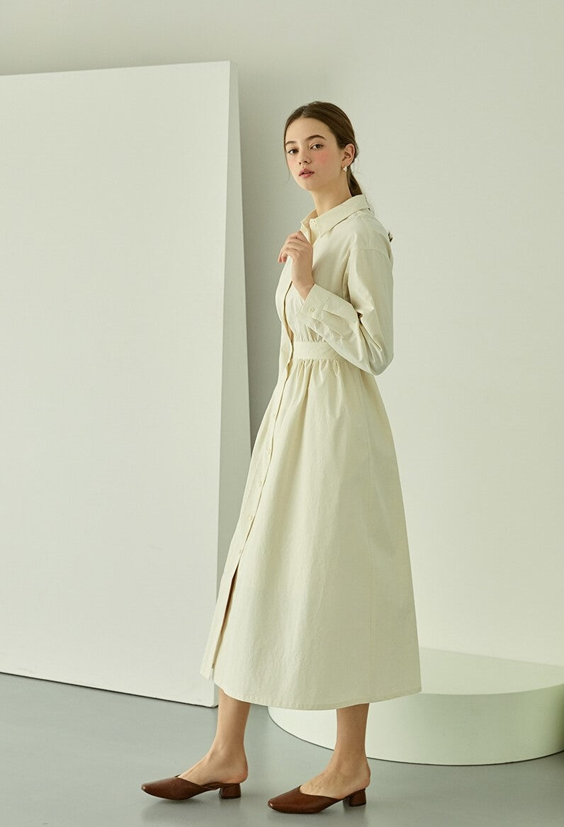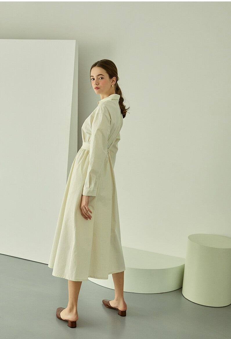 Designed for refined elegance and everyday wearability, this cotton poplin midi shirt dress from Laura Ren is a timeless wardrobe essential. Crafted from crisp, breathable cotton poplin, it features a full button-down front, classic pointed collar, and long sleeves with a tailored cuff. The defined waistband cinches the silhouette, creating a flattering shape while maintaining comfort and ease. Perfect for workwear or day-to-evening transitions, this Laura Ren dress offers modern minimalism with timeless appeal. Lightweight, versatile, and effortlessly sophisticated.