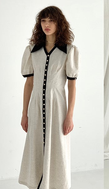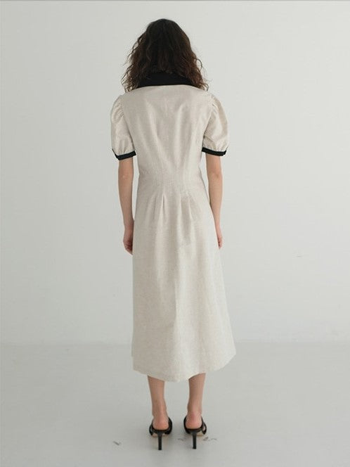 Laura Ren presents a playful take on structured summer tailoring with this button-front linen mini dress, designed for effortless daytime elegance. Featuring a wide pointed collar and voluminous short sleeves with soft ruffle hems, this dress is cut from breathable linen that holds its shape beautifully. Oversized buttons run down the front for a crisp, refined finish, while the relaxed silhouette ensures easy, breezy movement for warm-weather dressing. Style it with wrap sandals or espadrilles for your next vacation edit.