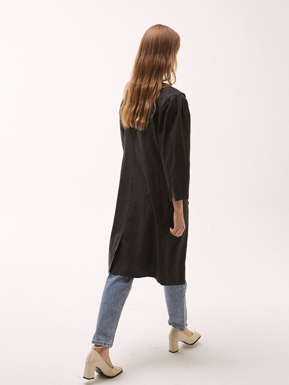 Elevate your wardrobe with this impeccably tailored linen dress from Laura Ren, designed for effortless elegance and all-day comfort. Crafted from high-quality breathable linen, this double-breasted dress features a sophisticated oversized notched collar and soft puff sleeves for a contemporary touch. The slim, structured silhouette offers a polished fit whether styled solo or layered as an outerwear piece. Thoughtfully designed with refined detailing and timeless appeal, this piece embodies minimalist sophistication—ideal for both formal and everyday wear. Embrace the modern-classic versatility of Laura Ren’s design sensibility.