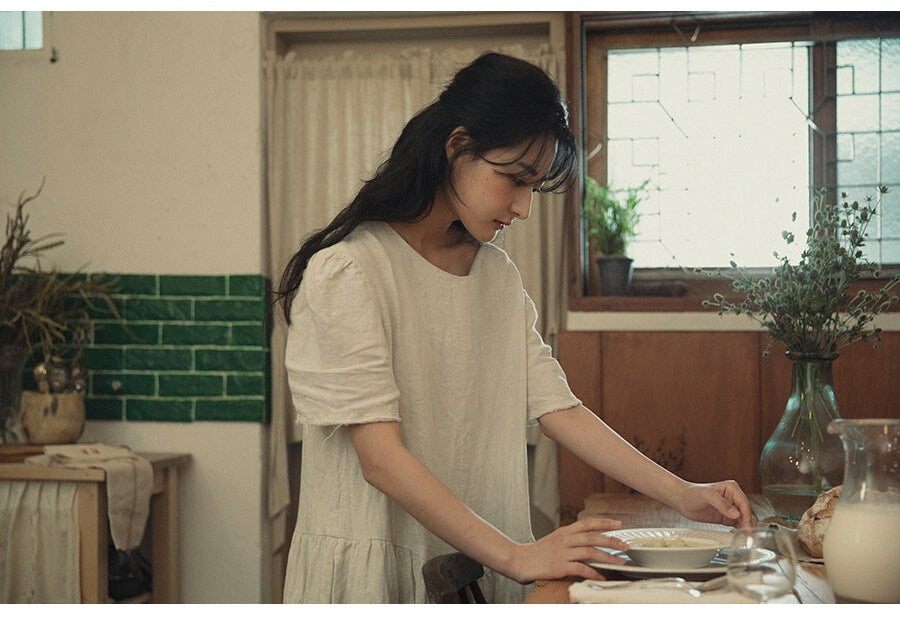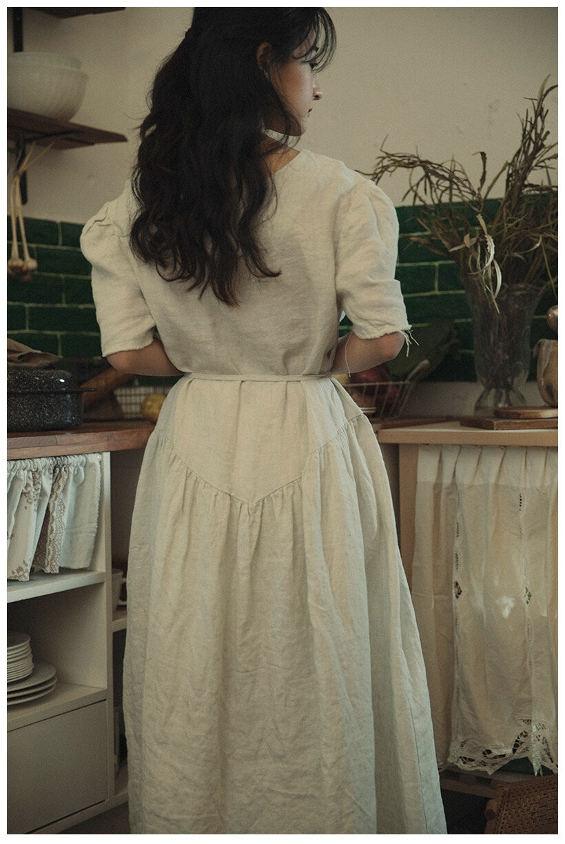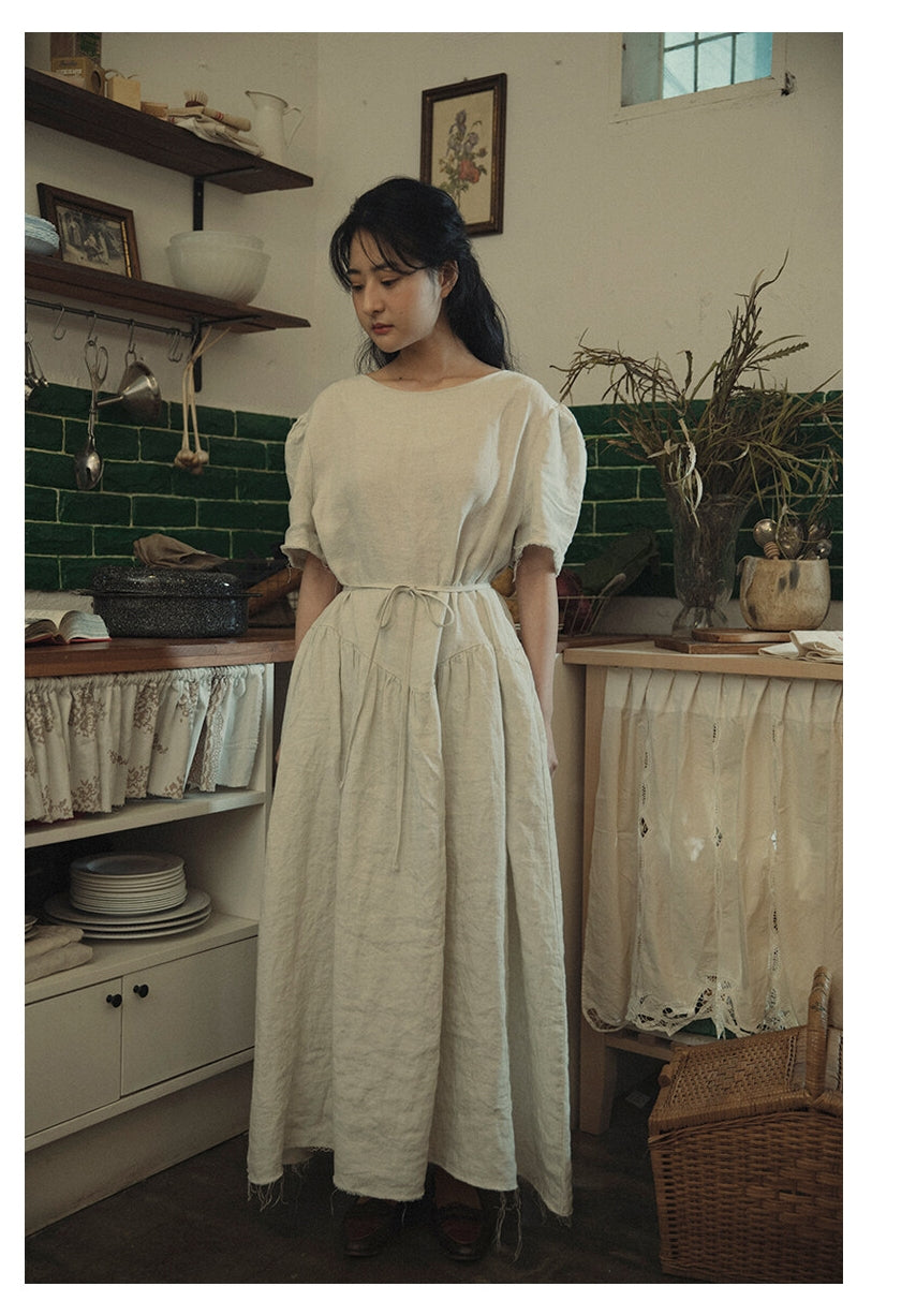 Consiéntete con la máxima elegancia con nuestro vestido largo Claire de lino y algodón con mangas abullonadas. Confeccionado en una lujosa mezcla de lino y algodón, este vestido luce una silueta fluida y delicadas mangas abullonadas que le dan un toque de sofisticación. Perfecto para cualquier ocasión, este vestido elevará tu estilo a nuevas alturas.