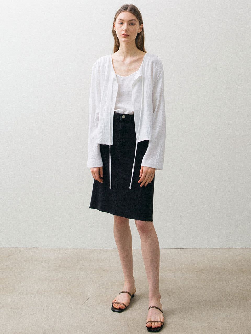 Elevate your wardrobe with this high-waisted denim midi skirt from Laura Ren, designed to blend classic structure with modern ease. Made from durable cotton denim, this skirt features a clean front seam, raw hem detailing, and a flattering high-rise silhouette that cinches at the waist. Perfectly tailored to enhance natural curves while maintaining comfort, it's ideal for everyday styling—from casual brunches to creative office wear. Pair it effortlessly with linen tops or light knits for a refined, minimalist look that transitions across seasons.