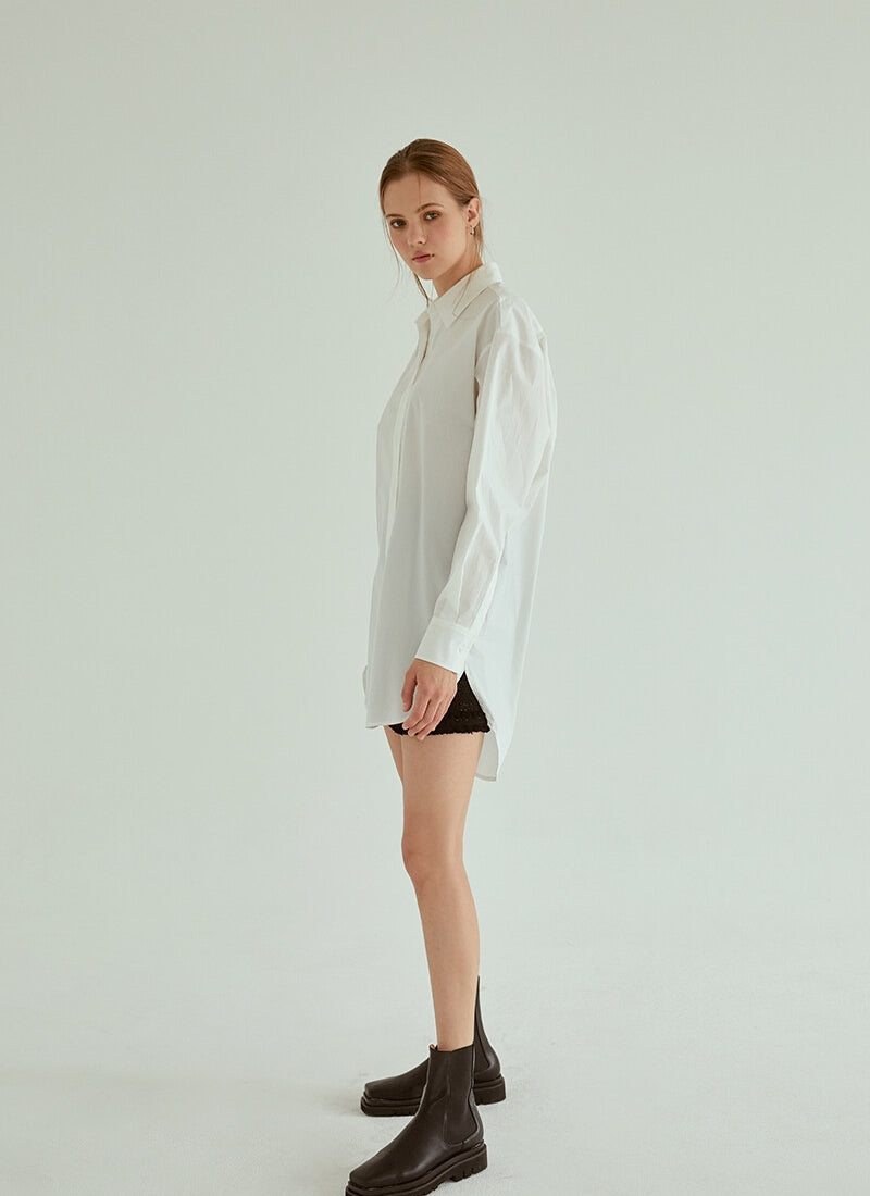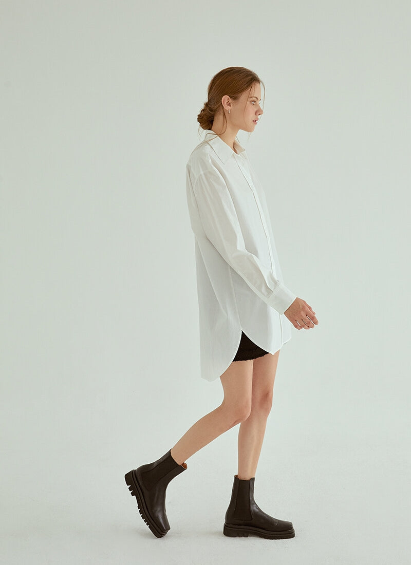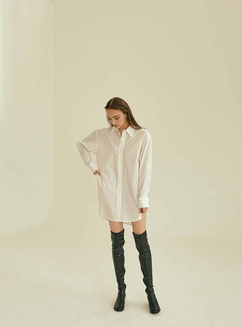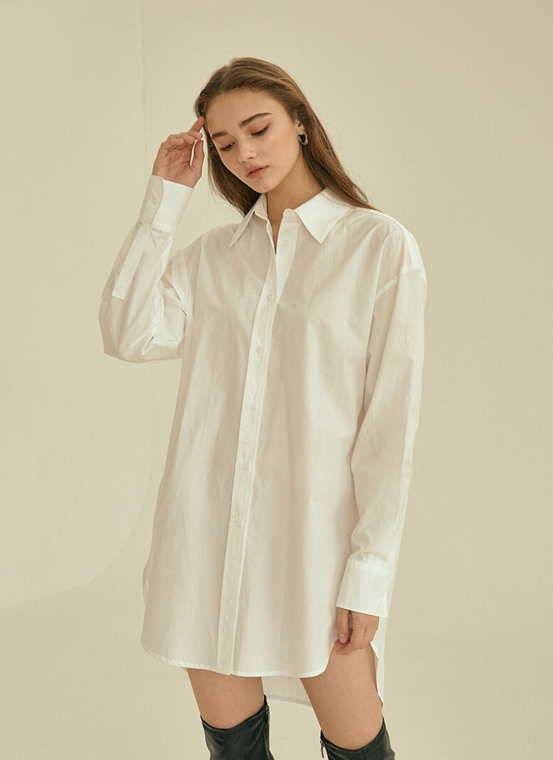 Timeless tailoring meets modern comfort in this oversized cotton poplin shirt by Laura Ren. Crafted from high-quality, breathable cotton poplin, this long-sleeve shirt features a structured collar, button-down front, and a relaxed fit that flatters all silhouettes. The curved high-low hem adds subtle sophistication, making it perfect for both casual and refined looks. Whether styled over trousers, layered under a blazer, or worn as a shirt dress, this versatile wardrobe essential transitions seamlessly across seasons. Laura Ren’s attention to detail ensures this piece is both elegant and endlessly wearable.