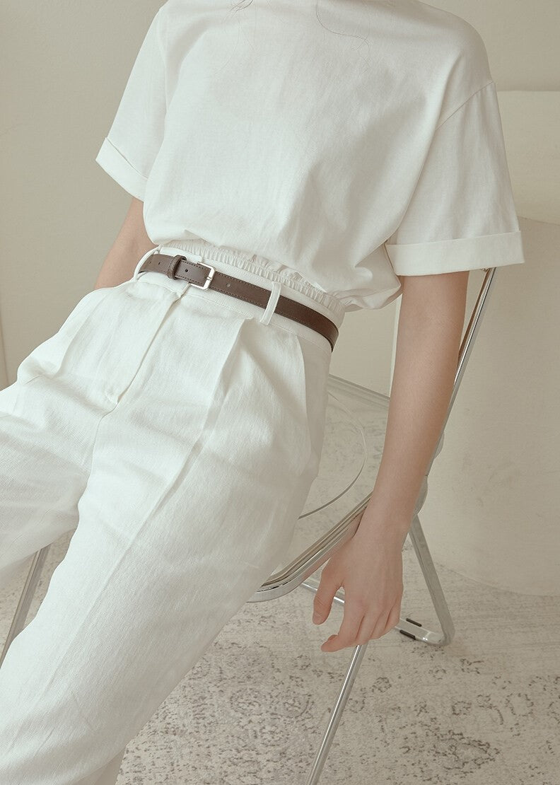 Discover everyday ease with this classic linen T-shirt from Laura Ren, designed for effortless elegance and breathable comfort. Crafted from high-quality linen, this tee offers a lightweight feel and a relaxed silhouette that drapes naturally on the body. Its minimal aesthetic makes it perfect for layering or wearing solo, whether paired with skirts or trousers. Ideal for warm weather or transitional layering, the timeless cut and premium fabric elevate it beyond a basic tee. A wardrobe essential for the modern woman seeking comfort without compromising on style.