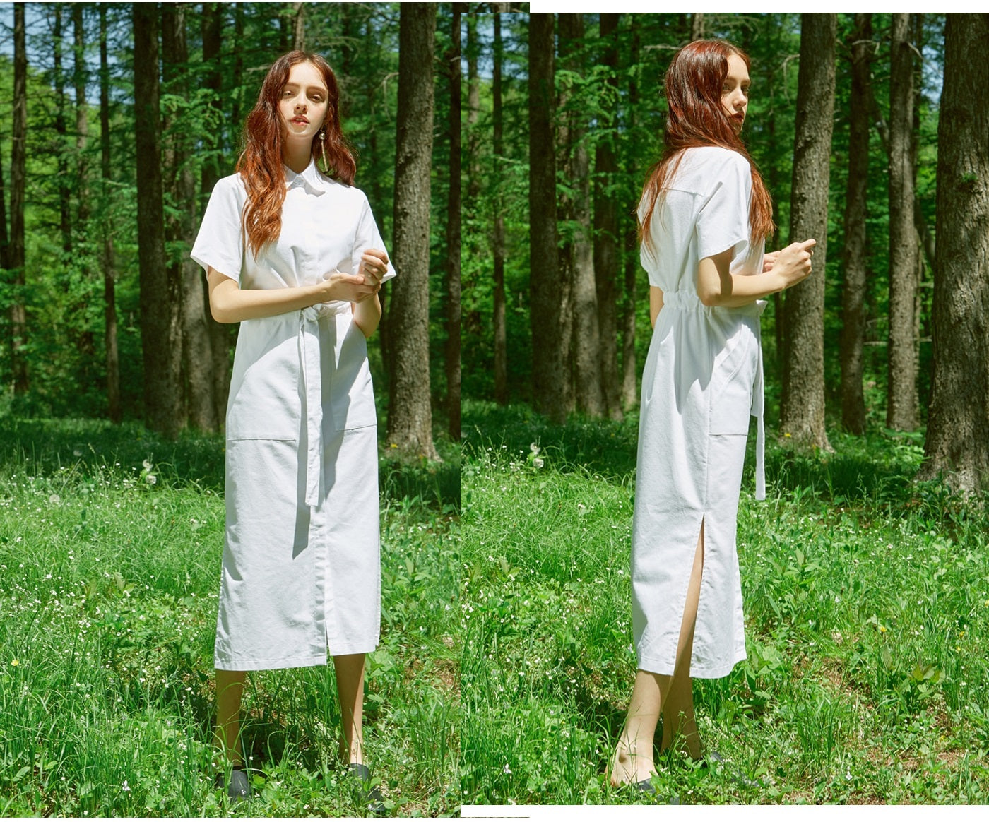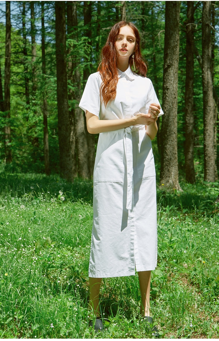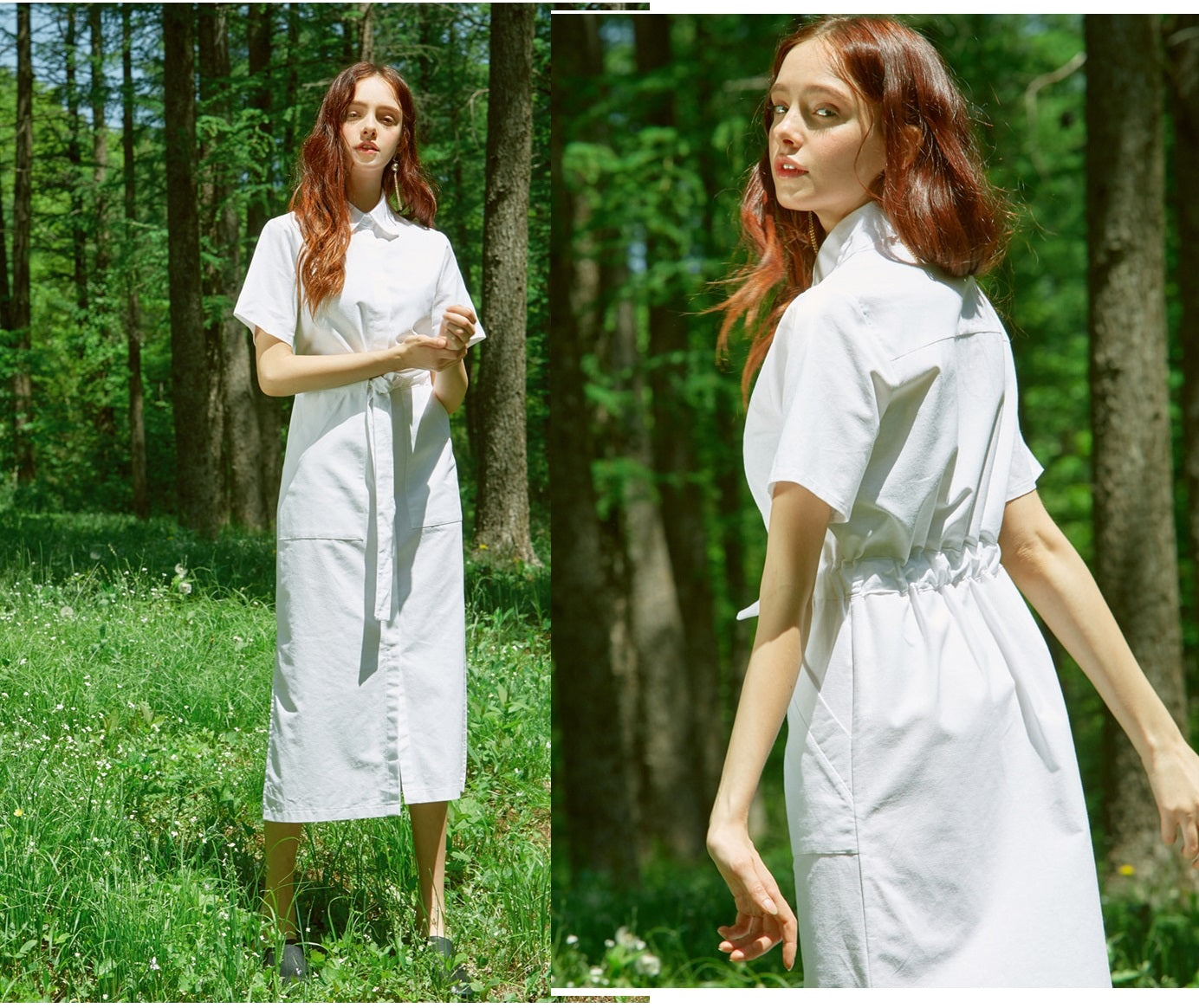 Laura Ren presents a refined interpretation of the shirt dress with this tailored piece crafted from breathable linen. Designed with a structured collar, short sleeves, and a waist tie that enhances the silhouette, this dress is both polished and effortless. A side slit adds ease of movement and an understated hint of allure. Perfect for summer outings, vacations, or elevated casual wear, this is a timeless wardrobe essential for the modern woman.