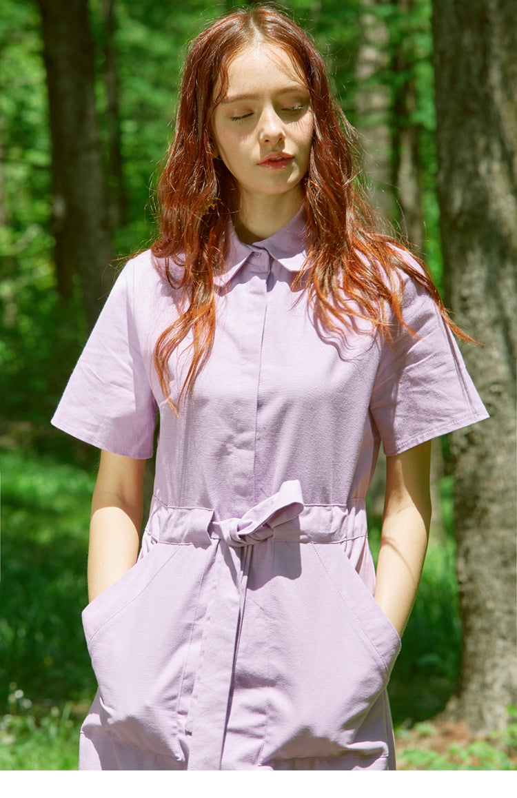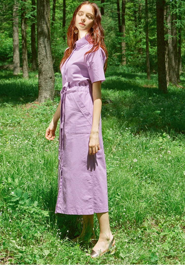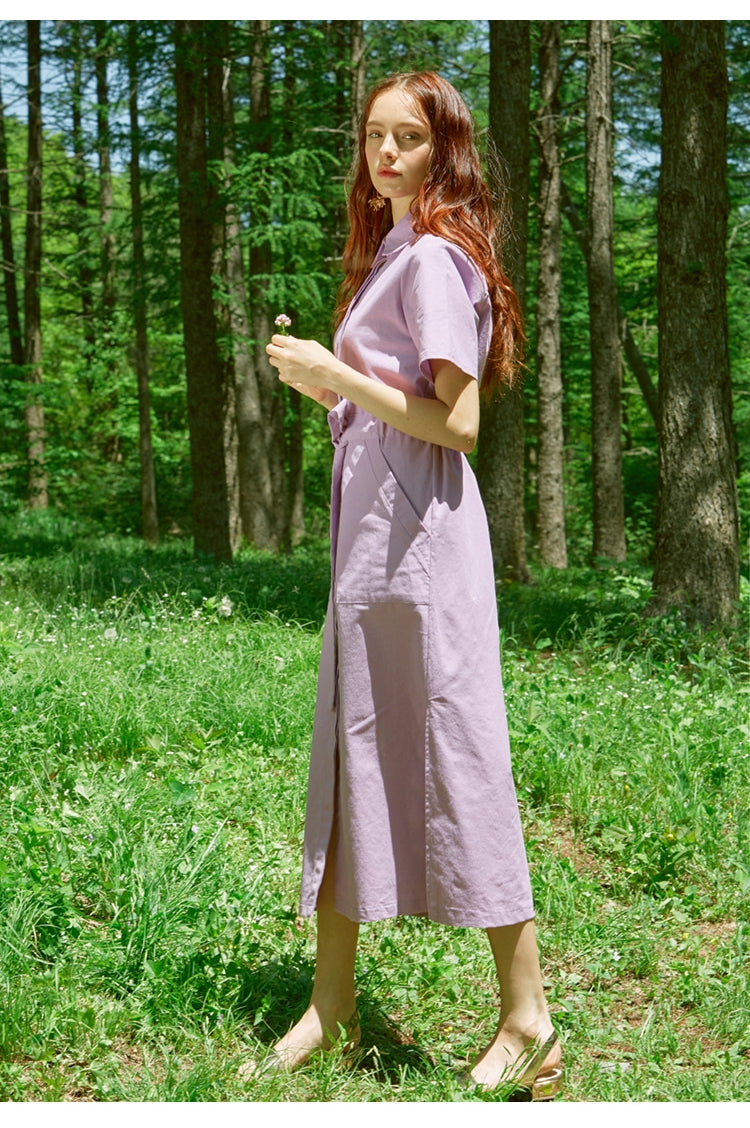 Laura Ren unveils a refined take on the classic shirt dress, crafted in airy linen with tailored simplicity. This collared design features a front placket, adjustable waist tie, and midi-length hem with a subtle side slit for easy movement. Short sleeves and structured seams offer a clean, crisp silhouette perfect for both casual days and elevated settings.