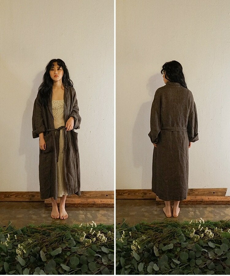 Disfrute del lujo con nuestra bata Minnie de lino y algodón. Hecha con una mezcla de lino y algodón de alta calidad, esta bata ofrece transpirabilidad y suavidad. Perfecta para relajarse en casa o de vacaciones, esta elegante bata es imprescindible para la mujer moderna. Eleve su nivel de relajación con la bata Minnie de lino y algodón.