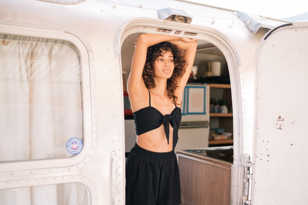 Laura Ren redefines classic summer minimalism with this cotton crop bikini top, designed for relaxed days in the sun. Featuring a flattering bandeau silhouette with a playful front-tie detail, this top is made from soft, breathable cotton that offers a natural feel against the skin. Adjustable spaghetti straps ensure a secure, customizable fit. Whether worn at the beach or styled under a lightweight shirt, this piece is effortlessly versatile and endlessly chic.
