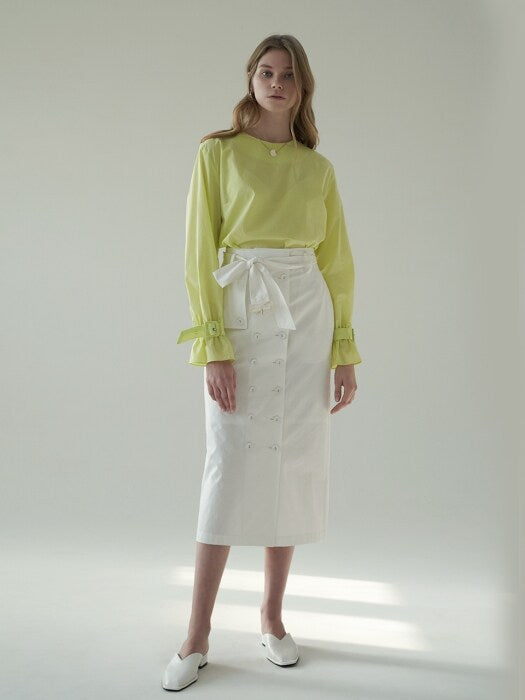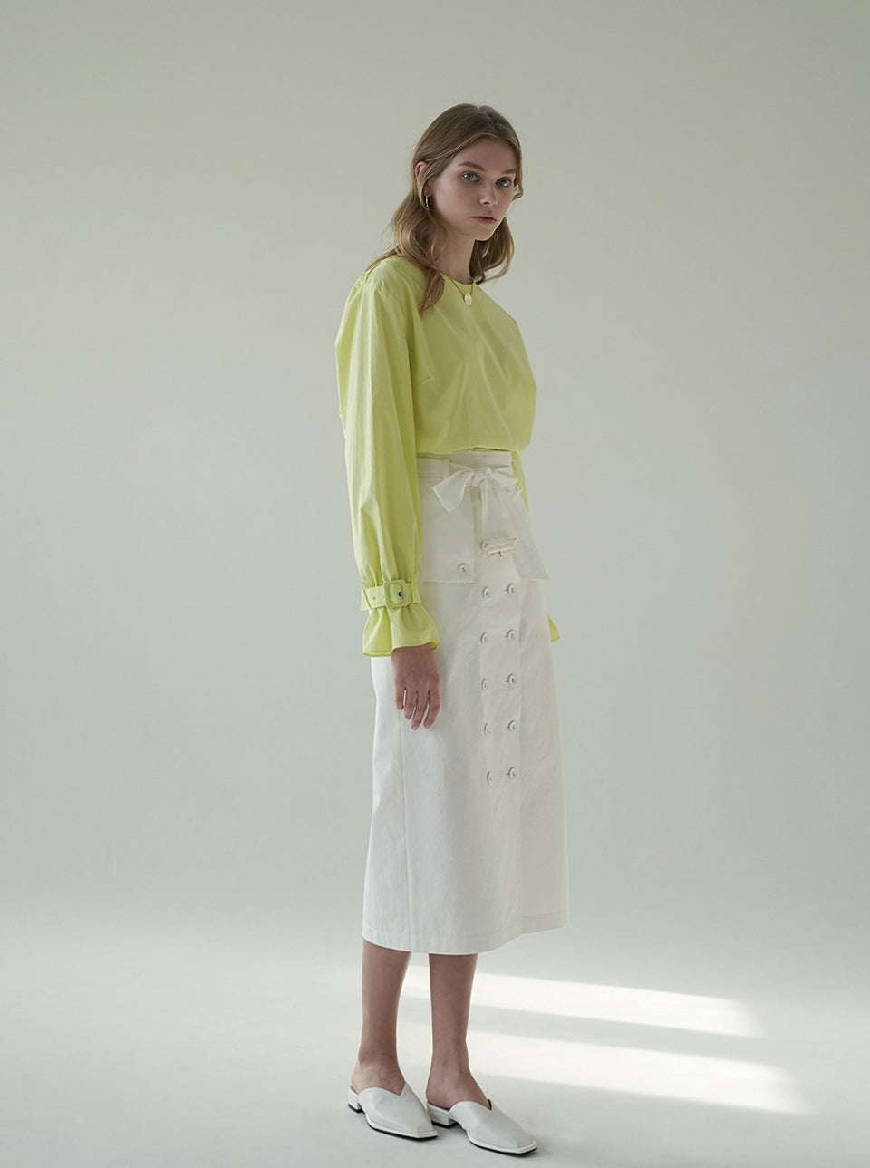 Refresh your wardrobe with this crisp cotton poplin blouse by Laura Ren, designed to balance structure and ease. Crafted from lightweight, breathable cotton poplin, this long-sleeve blouse features refined buckled cuffs, a relaxed fit, and a classic round neckline. The slightly voluminous sleeves add a modern silhouette, while the clean lines make it a versatile staple for both elevated daywear and polished office looks. Laura Ren’s meticulous craftsmanship ensures this blouse remains timeless and chic. Ideal for pairing with tailored trousers or skirts, it offers comfort and sophistication in equal measure.