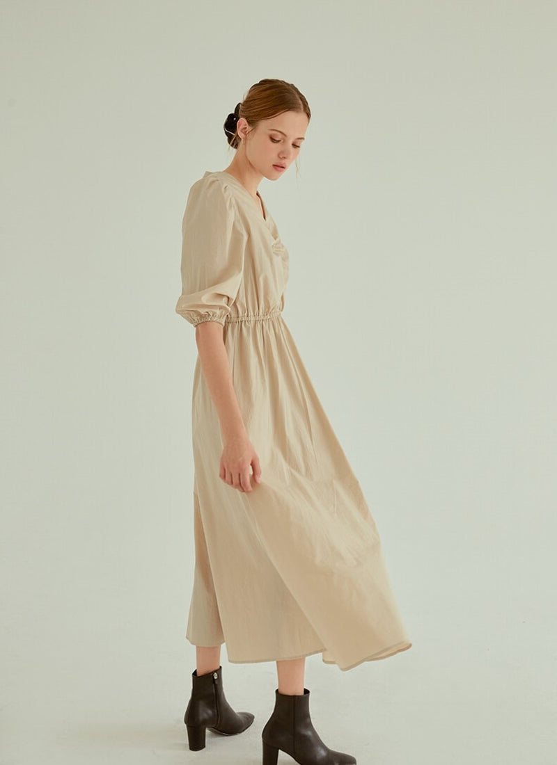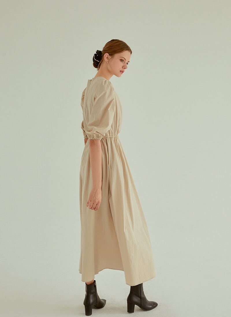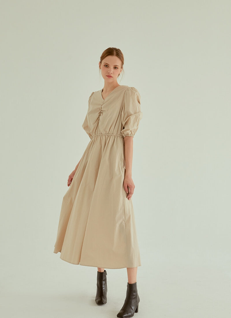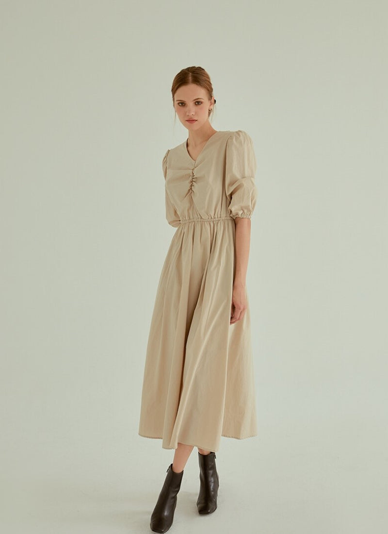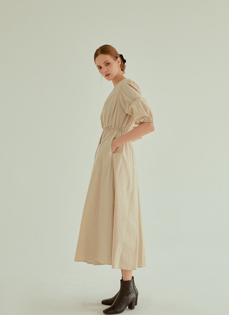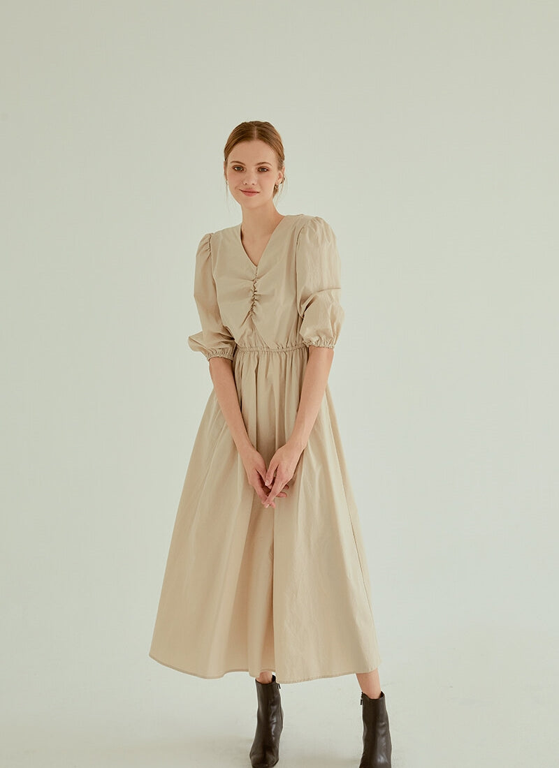 Discover refined minimalism with this cotton poplin midi dress from Laura Ren. Designed with a soft ruched bodice and gathered puff sleeves, this dress brings structure and comfort in perfect balance. The elasticated waistline cinches in gently for a flattering silhouette, while the flowing A-line skirt moves with effortless grace. Crafted from breathable cotton poplin, this piece is ideal for warm weather dressing or layering during cooler months. Whether styled casually or elevated with heels, this Laura Ren dress offers a timeless and versatile wardrobe staple.