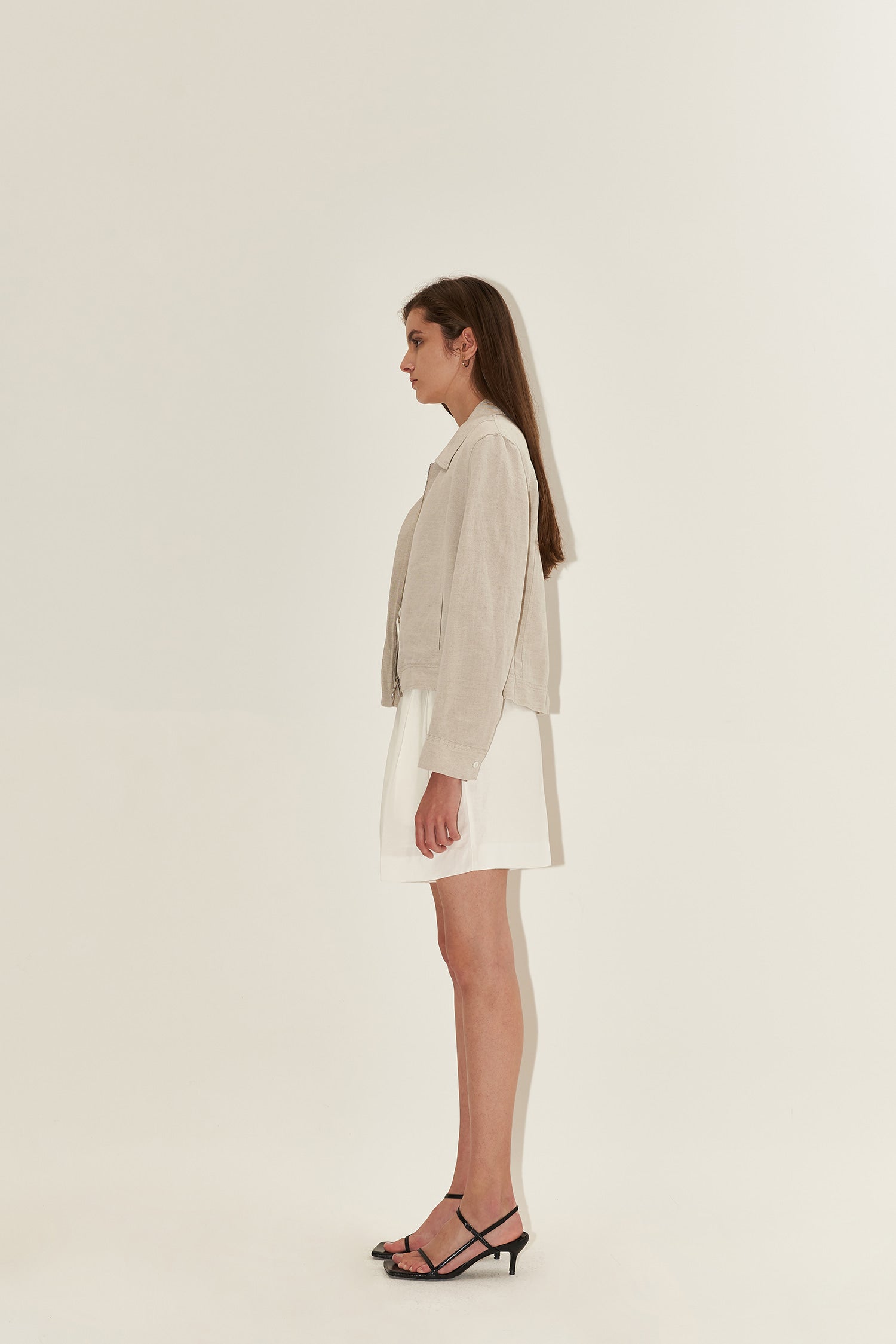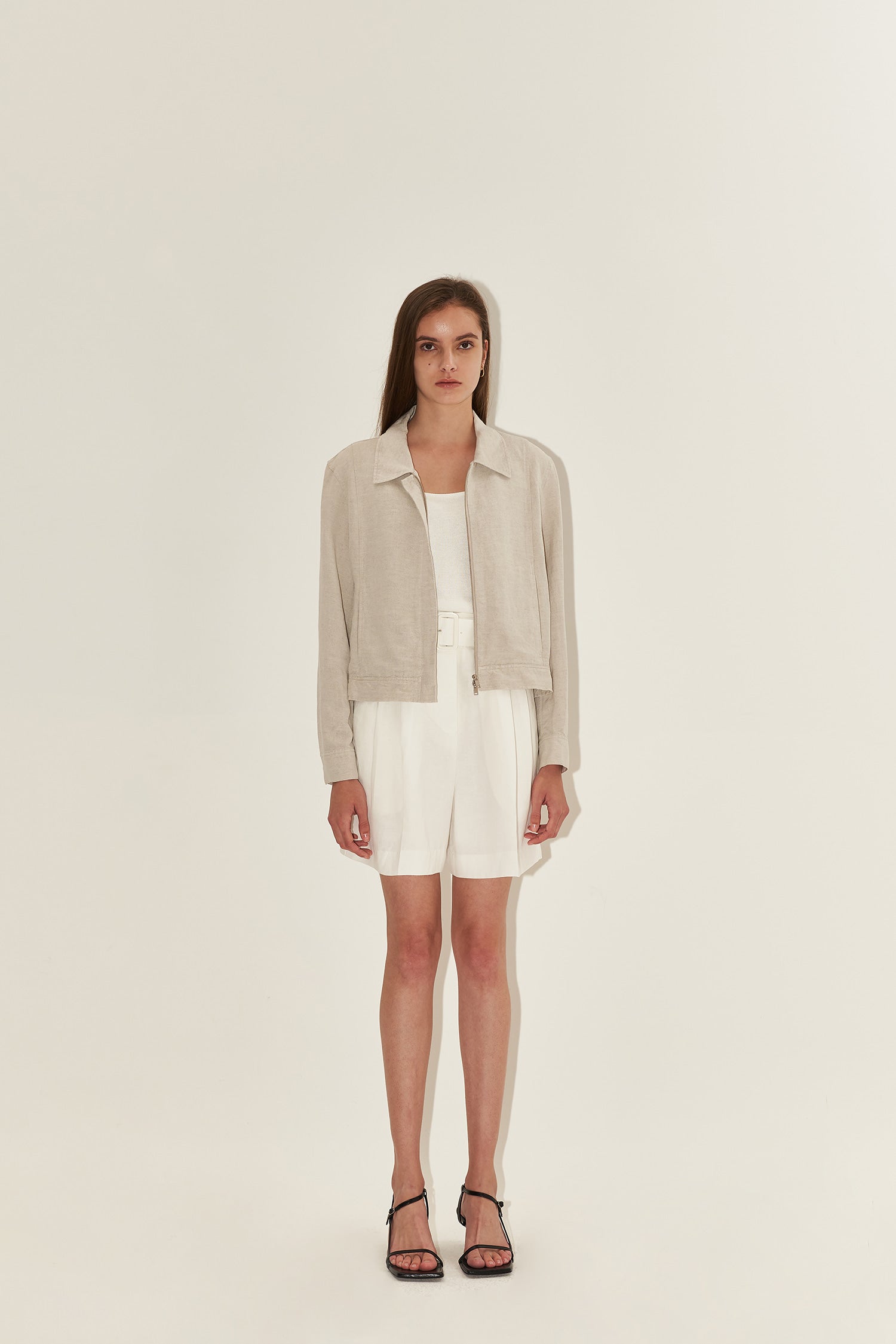 Crafted from premium breathable linen, this cropped blazer from Laura Ren embodies effortless elegance and modern minimalism. Designed for the sophisticated woman, it features a clean zip-up front, relaxed fit, and lightweight feel—perfect for transitional layering. The soft collar and subtly structured shape make it versatile for both casual daytime outfits and elevated evening looks. Whether paired with tailored trousers or over a summer dress, this linen blazer offers timeless style with functional comfort. Add this wardrobe staple by Laura Ren to your capsule collection for seasonless appeal.