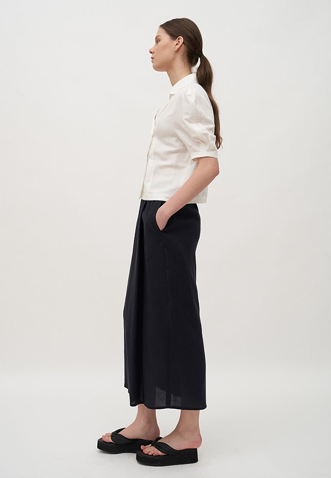 Add a refined touch to your wardrobe with this double-breasted linen blouse by Laura Ren. Crafted from breathable, high-quality linen, this blouse features a structured silhouette, gently puffed sleeves, and a classic notched lapel collar. The cropped length offers versatility, pairing seamlessly with high-waisted skirts or tailored trousers. The front is adorned with a row of tonal buttons, balancing minimalism and vintage elegance. Ideal for both work and weekend ensembles, this blouse is the perfect blend of feminine charm and contemporary tailoring. Laura Ren’s commitment to elevated everyday pieces ensures this staple will be a lasting favorite.
