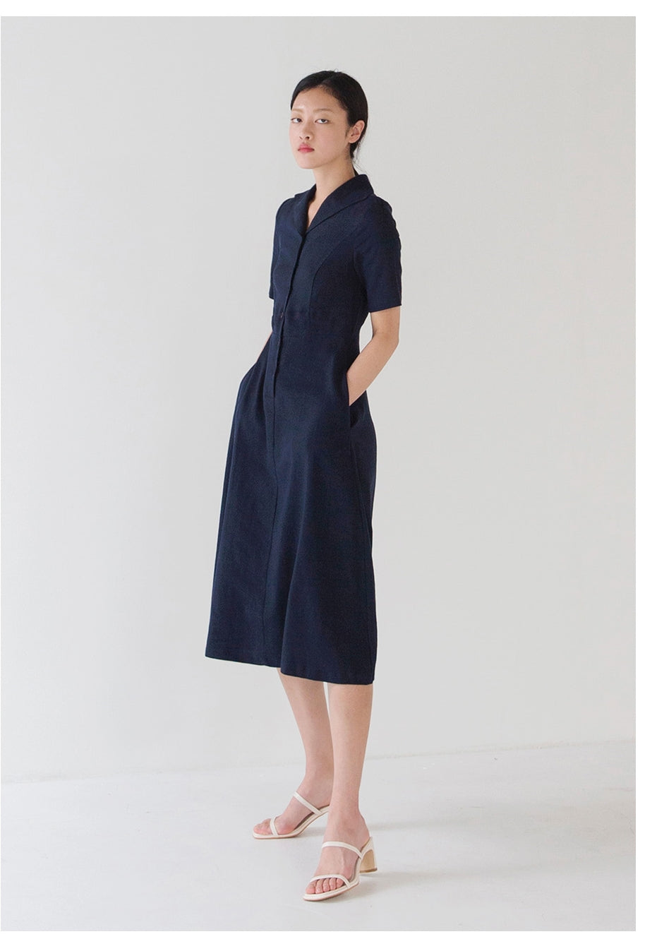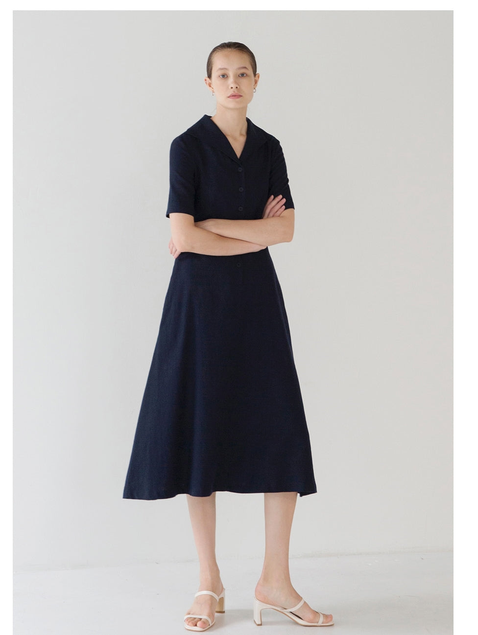 Embrace effortless sophistication with this button-front linen midi dress from Laura Ren. Crafted from breathable, natural linen, this dress features a tailored collar neckline, short sleeves, and a flattering A-line silhouette that flows gracefully with every step. The structured yet soft fabric provides comfort for warm weather while maintaining a refined shape, perfect for both casual outings and semi-formal occasions. With subtle pleats and a relaxed fit, this Laura Ren linen dress is a timeless wardrobe staple that pairs beautifully with sandals, heels, or flats for a polished seasonal look.