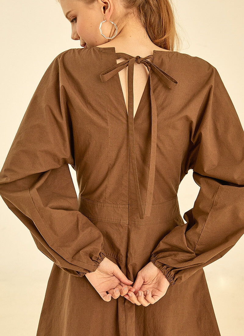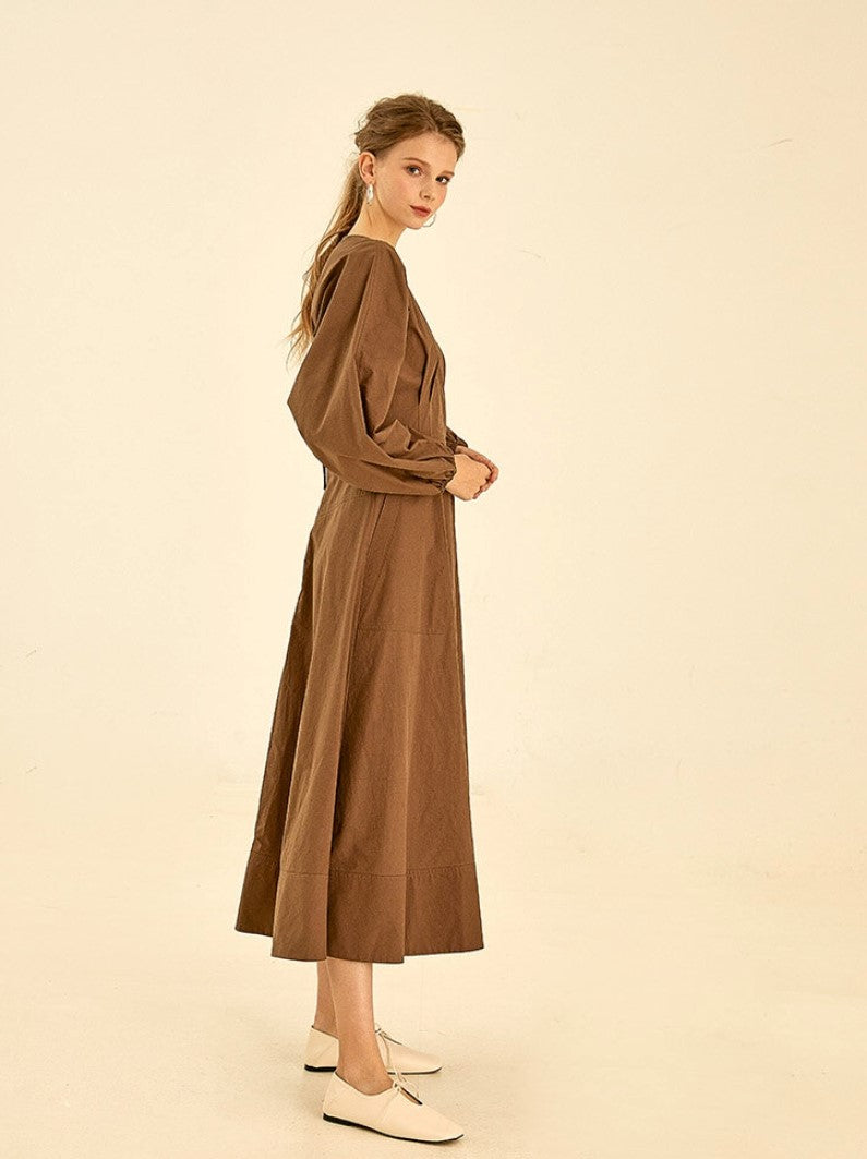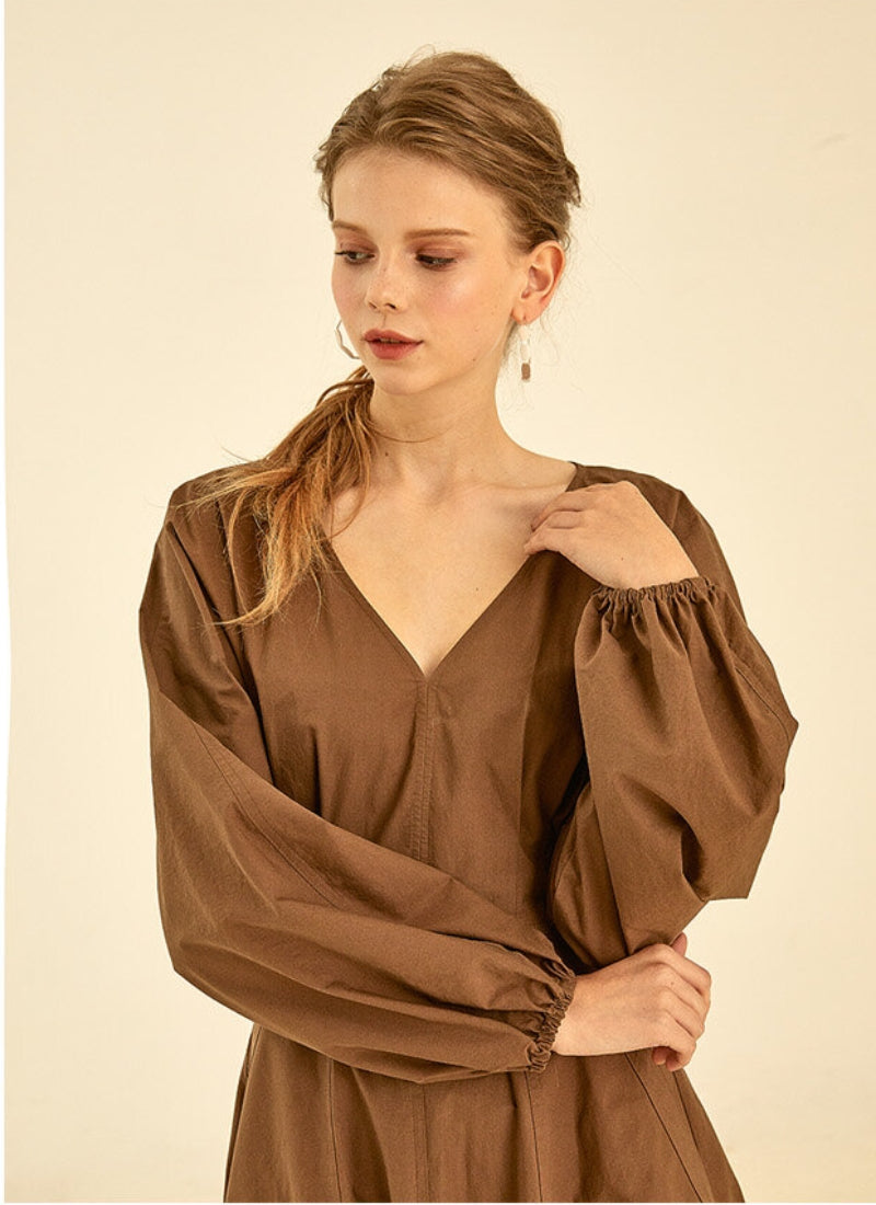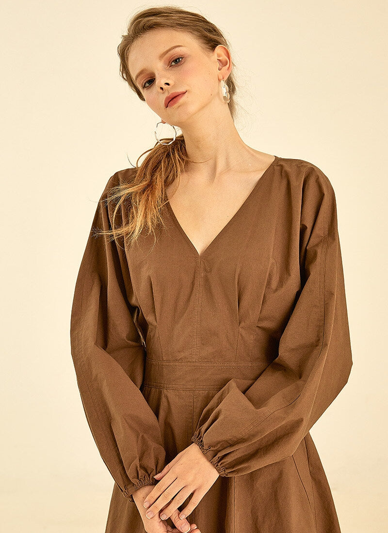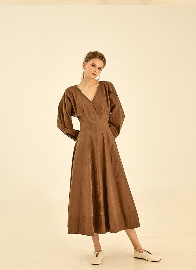 This cotton poplin dress from Laura Ren redefines understated elegance with its refined silhouette and luxurious fabric. Crafted from premium cotton poplin, the dress features a flattering V-neckline, voluminous long sleeves, and a softly gathered waist that enhances the feminine shape. The flared midi-length skirt offers graceful movement, making it ideal for both everyday elegance and refined occasions. A discreet back-tie detail completes the polished look. Designed for the modern woman, this dress blends comfort with contemporary sophistication—perfect for elevated daywear or effortless evening transitions.