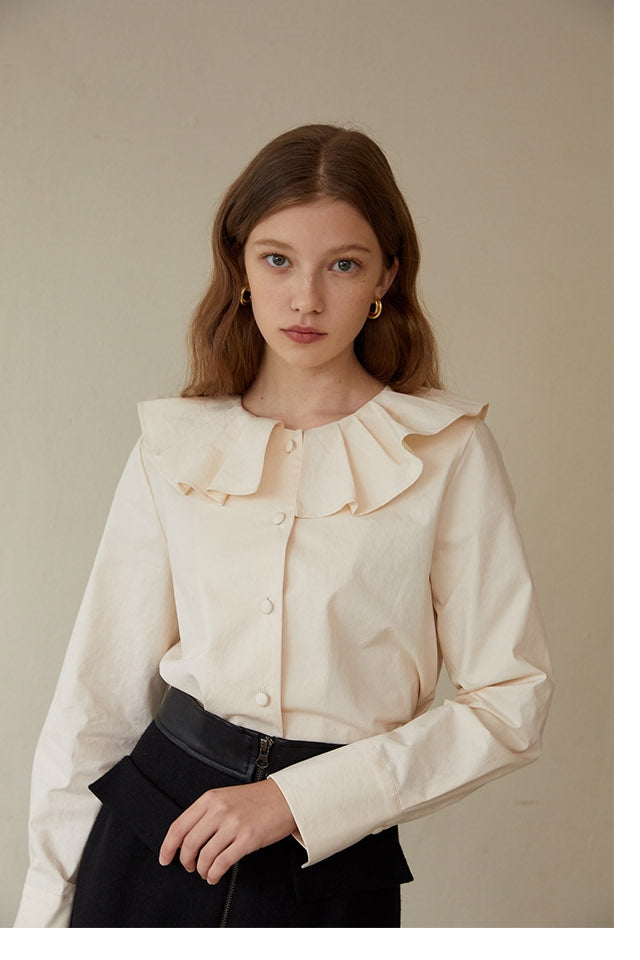 This refined linen blouse from Laura Ren is a perfect blend of elegance and structure, tailored for the discerning modern woman. Crafted from breathable linen, it features a graceful ruffled collar, full button-front closure, and long sleeves with tailored cuffs—creating a sophisticated silhouette that transitions seamlessly from office wear to elevated casual ensembles. Whether paired with tailored skirts or high-waisted trousers, this linen blouse offers versatility, comfort, and a polished look for any season. Elevate your wardrobe with this timeless and chic essential from Laura Ren’s premium collection.