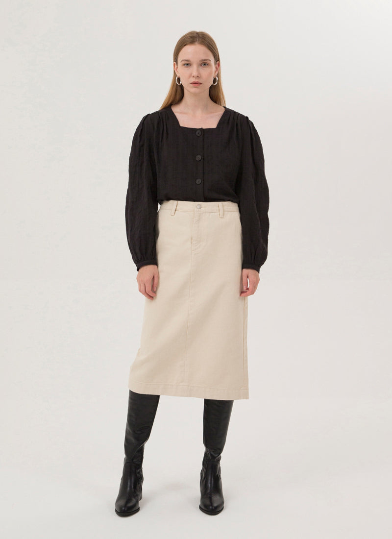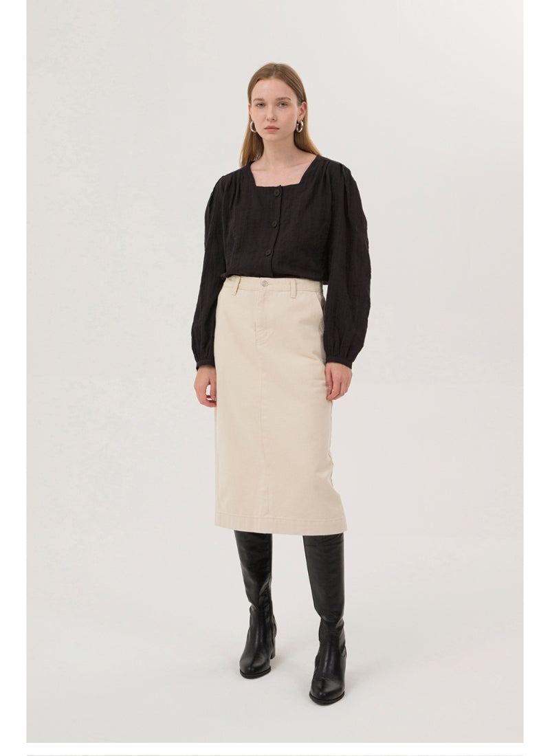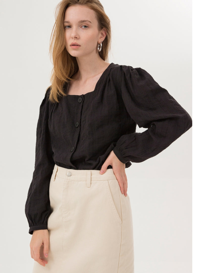 Elevate your wardrobe with this square neck linen blouse from Laura Ren, designed to balance structure and softness. Made from breathable and sustainable linen fabric, this blouse features voluminous puffed sleeves and a relaxed fit that exudes understated sophistication. The front button-down detail adds a classic touch while enhancing functionality. Perfect for both day-to-night transitions and layered seasonal looks, this piece embodies Laura Ren's timeless minimalism and elevated simplicity. Pair it with skirts or tailored trousers for effortless elegance.