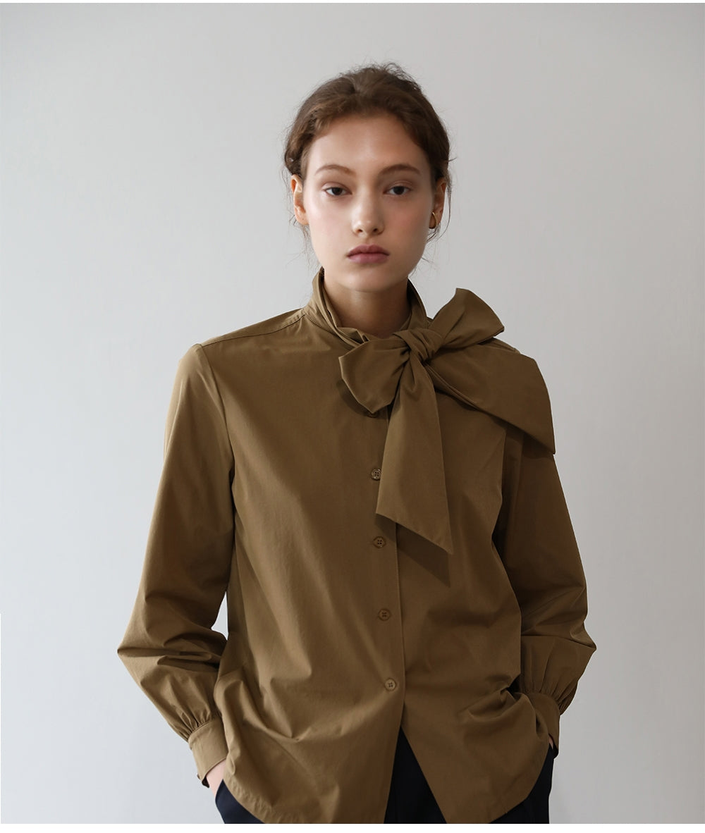 Refined and versatile, this long sleeve linen blouse from Laura Ren offers timeless elegance with modern minimalism. Crafted from breathable, high-quality linen, this piece features a graceful tie neck detail that adds a sophisticated statement to your wardrobe. The tailored fit is balanced with soft volume in the sleeves, finished with subtle buttoned cuffs for a polished look. Ideal for transitioning from office to evening, this blouse combines comfort with elevated design. Style it with trousers or skirts for a polished, effortless ensemble. A wardrobe essential for the modern woman who values quality, comfort, and clean lines.