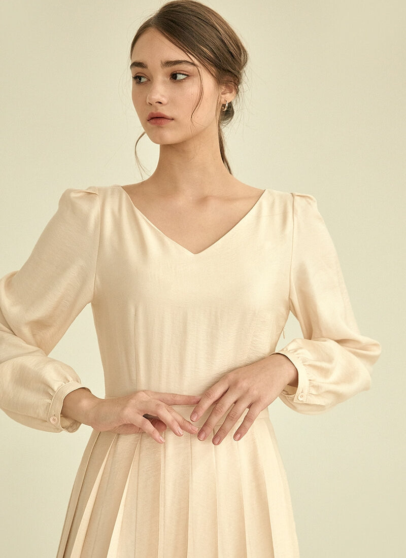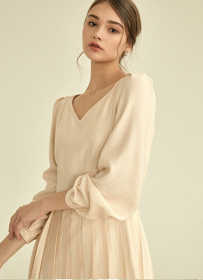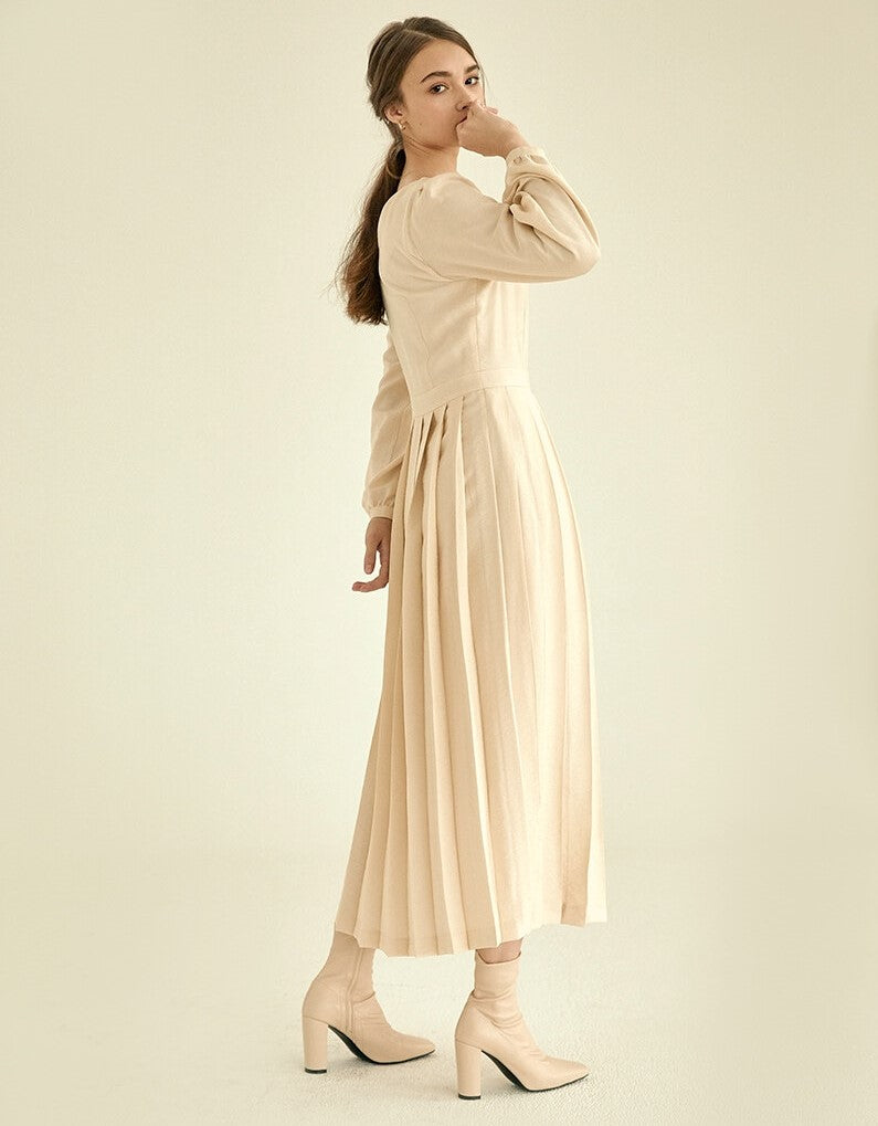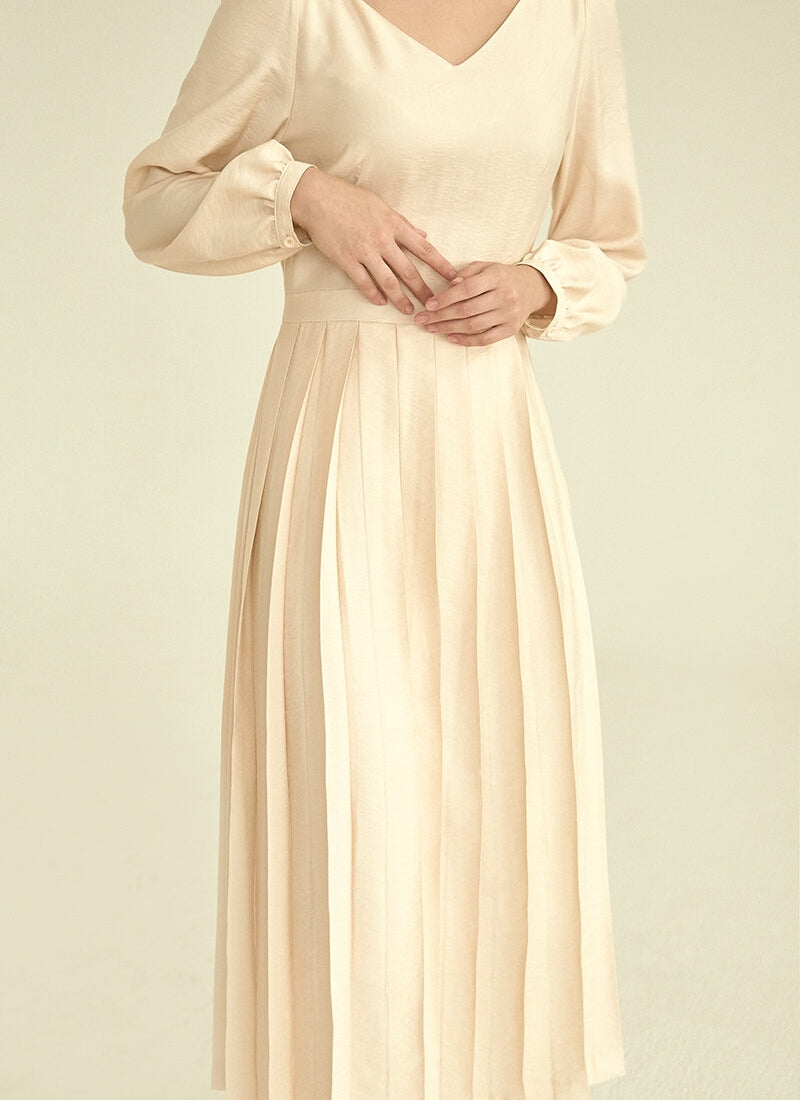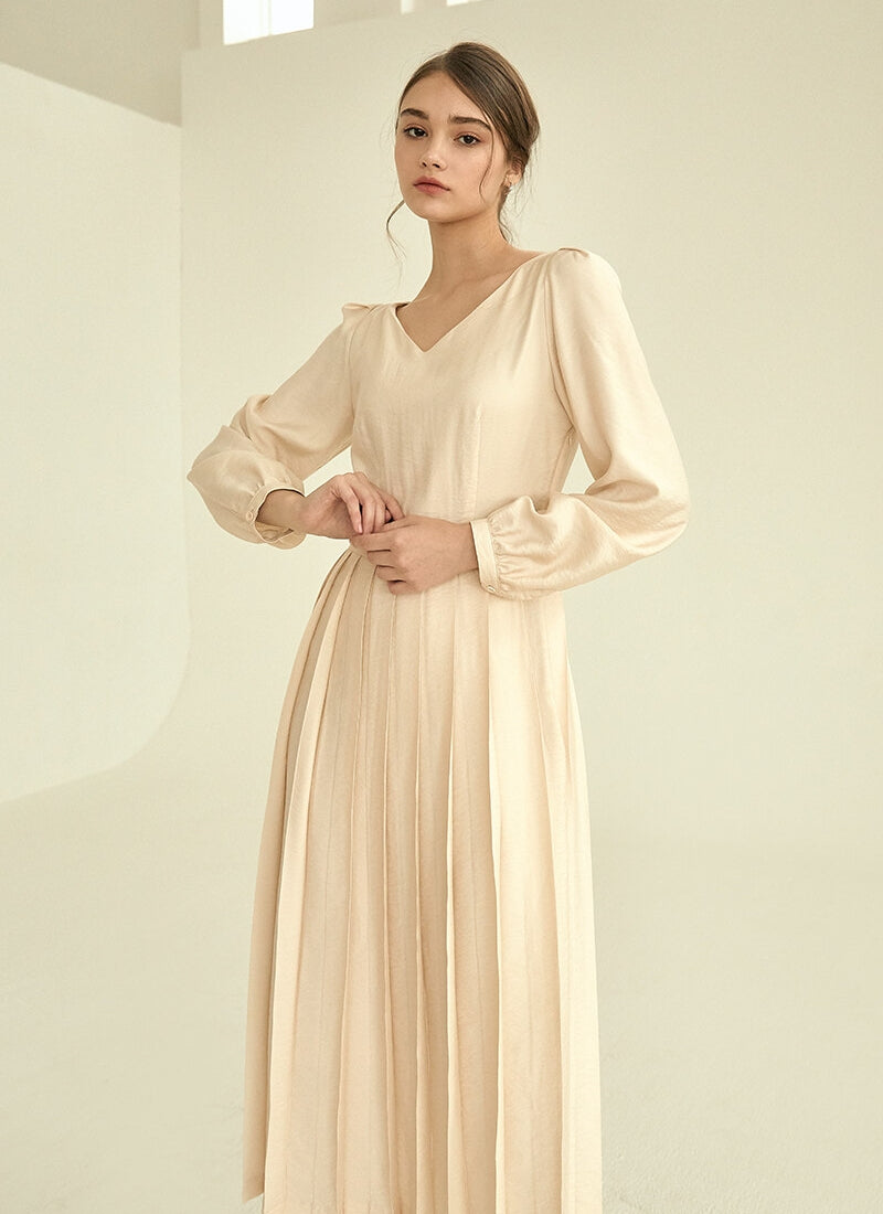 This beautifully crafted midi dress from Laura Ren is made from premium-quality linen, offering a breathable yet structured silhouette perfect for refined everyday wear or special occasions. The design features a flattering V-neckline, long sleeves with subtle gathers at the cuff, and a graceful pleated skirt that flows effortlessly with each step. Its tailored waist enhances the feminine figure while maintaining comfort and ease. Designed with a minimalist aesthetic and timeless structure, this linen dress from Laura Ren is a versatile wardrobe staple ideal for both casual elegance and polished looks. Add understated luxury and texture to your seasonal wardrobe with this essential piece.