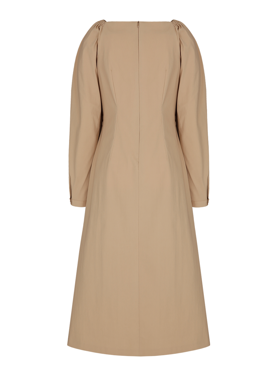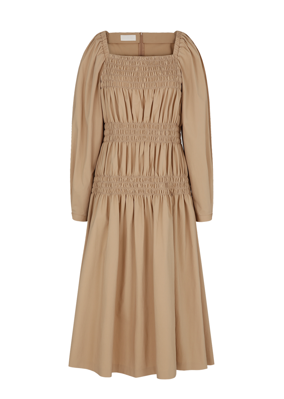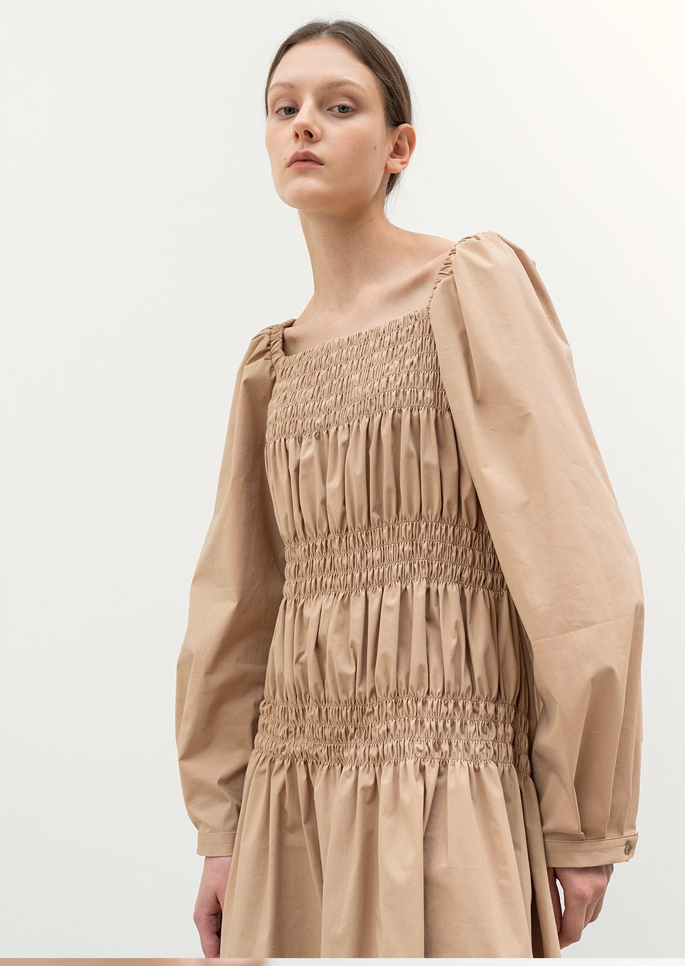 Refined and romantic, this ruched linen dress by Laura Ren brings an effortless charm to any wardrobe. Crafted from breathable, high-quality linen, this midi-length piece features meticulous gathered smocking at the bodice and waist for a sculpted yet comfortable fit. The long, voluminous sleeves and square neckline add a timeless appeal, perfect for both casual and formal occasions. Designed with a concealed back zipper and soft drape, this dress ensures graceful movement and all-day ease. A versatile wardrobe staple, this dress pairs beautifully with heels or flats, making it ideal for brunches, garden parties, or evening events.