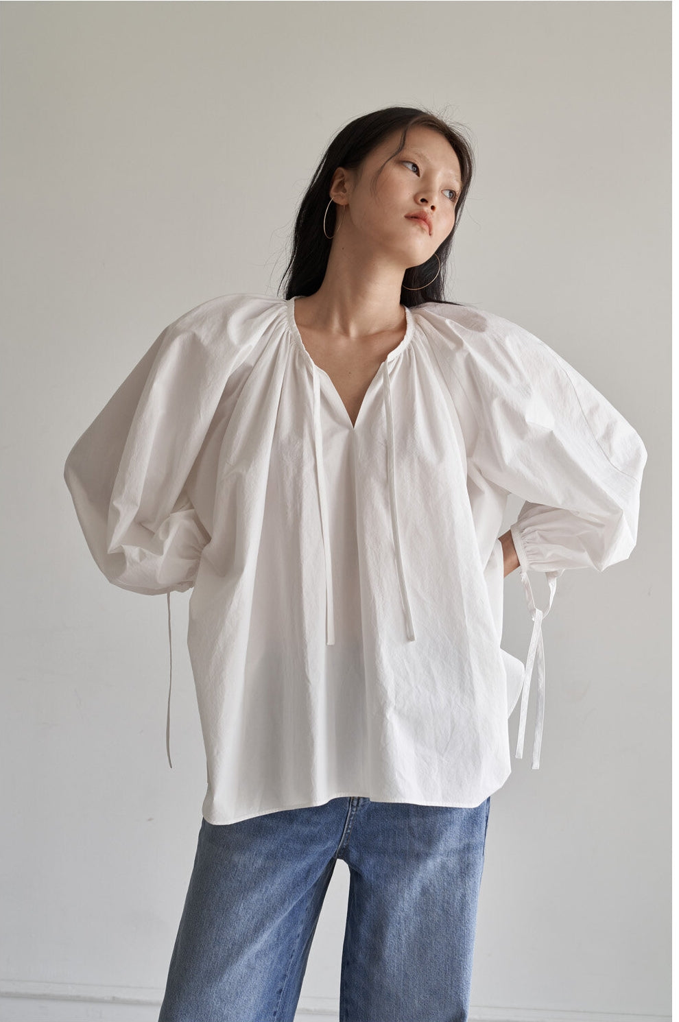 The linen blouse by Laura Ren redefines contemporary sophistication with its voluminous puff sleeves and artfully relaxed silhouette. Crafted from breathable, natural linen, this blouse offers both comfort and chic versatility. The gathered neckline features drawstring ties for a subtle feminine accent, while the sculpted shape brings effortless grace to any ensemble. Ideal for layering or wearing solo, this timeless piece transitions seamlessly from day to evening. Whether paired with tailored trousers or casual denim, this blouse from Laura Ren ensures an elevated yet understated look for the modern woman.
