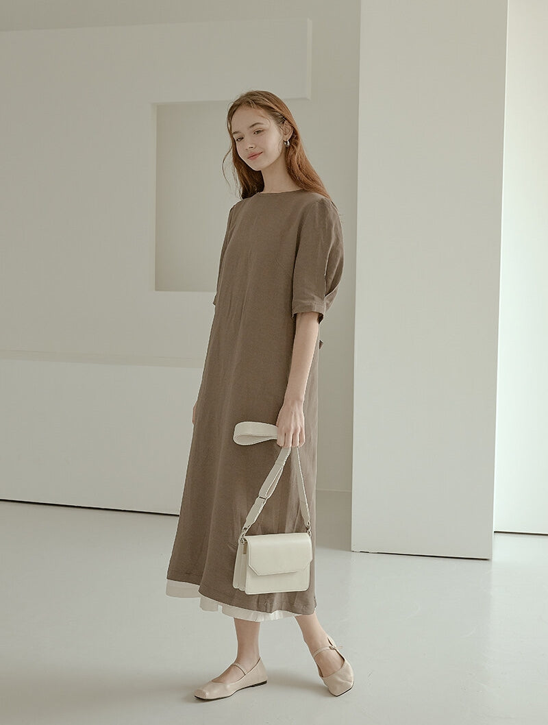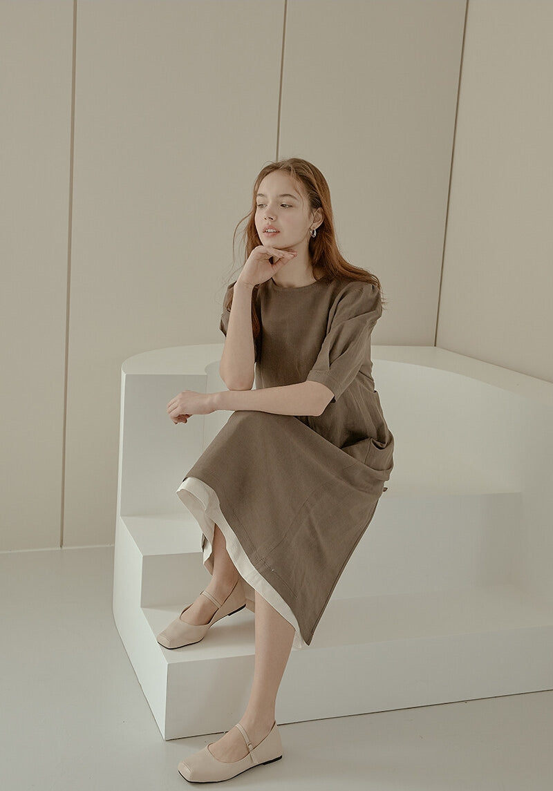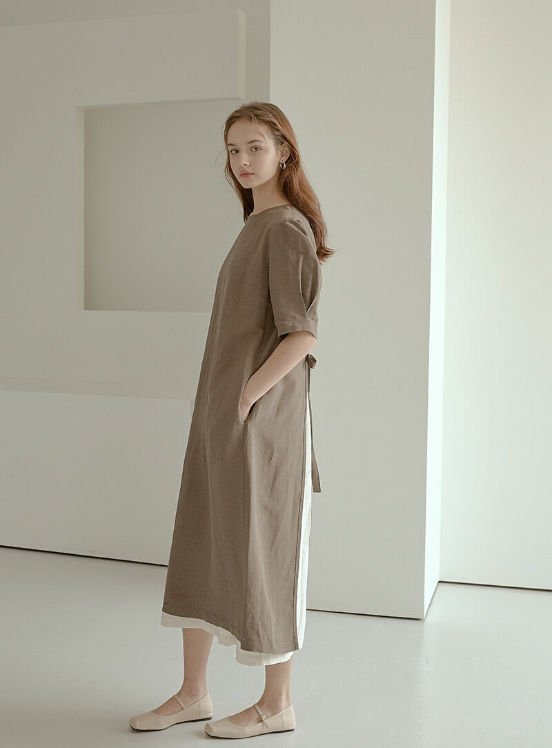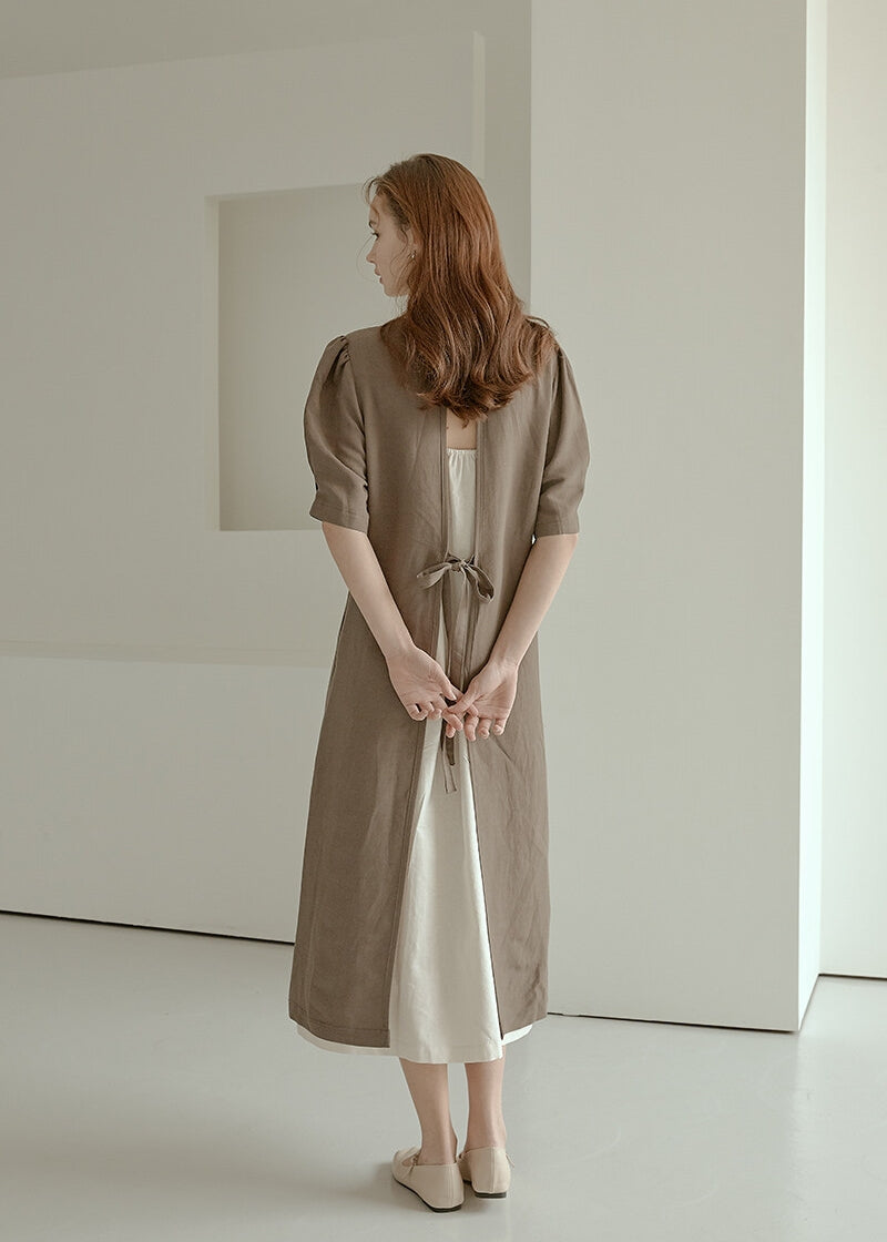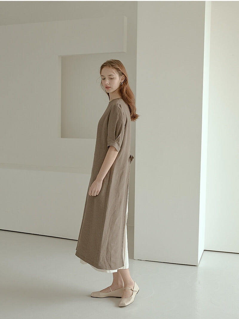 Elevate your wardrobe with this elegant puff sleeve midi dress crafted from breathable premium linen. The timeless silhouette is softened by gentle pleats and a back tie detail, offering both comfort and understated sophistication. Designed by Laura Ren, this dress features half sleeves and a relaxed fit that skims the body effortlessly, making it perfect for both casual days and refined occasions. The natural drape of the linen fabric enhances movement, while the minimalist structure brings out the purity of its design. A must-have staple for lovers of classic, contemporary fashion.