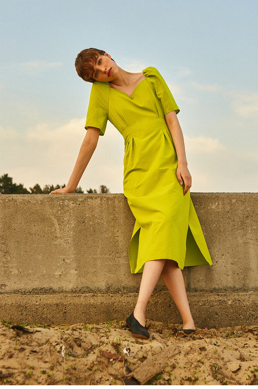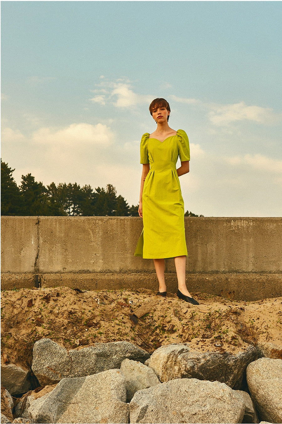 Step into refined simplicity with this puff sleeve linen midi dress by Laura Ren. Crafted from breathable, lightweight linen, this dress features a romantic sweetheart neckline and structured puff sleeves that add feminine charm. The fitted bodice and strategic waist pleats highlight your silhouette, while the elegant midi length and back slit offer graceful movement and effortless sophistication. Ideal for garden parties, beach events, or summer evenings, this linen dress blends timeless style with everyday comfort. Laura Ren’s commitment to premium fabrics and clean tailoring ensures a polished yet relaxed look perfect for the modern minimalist wardrobe.