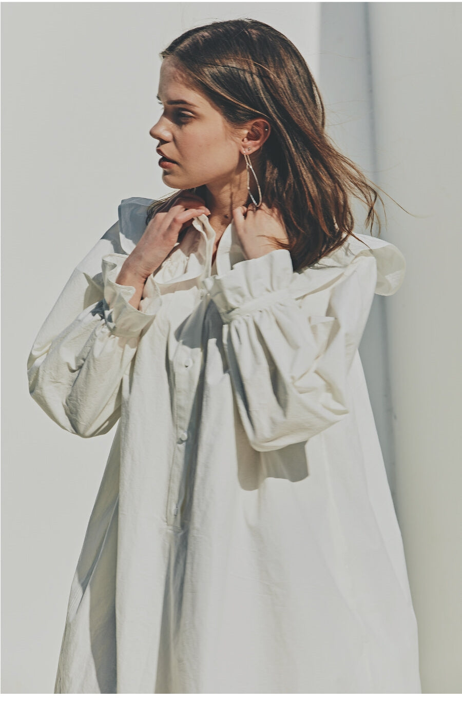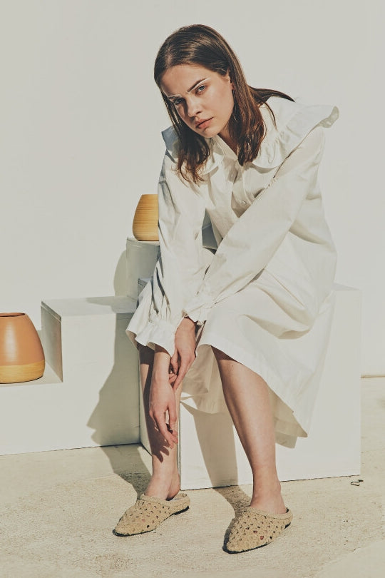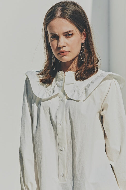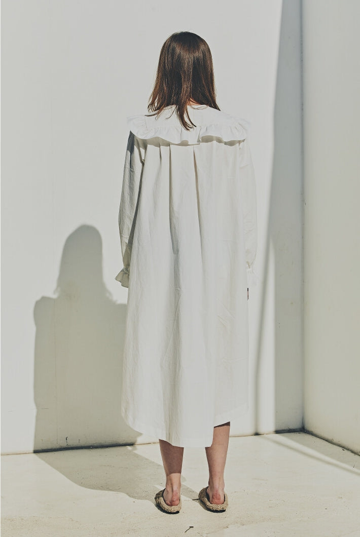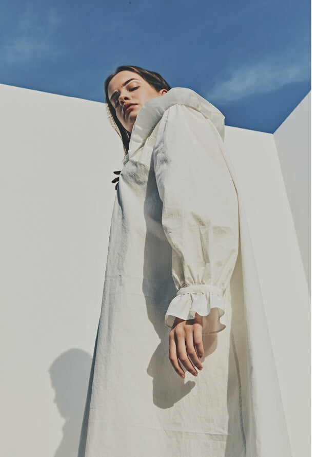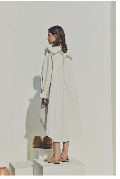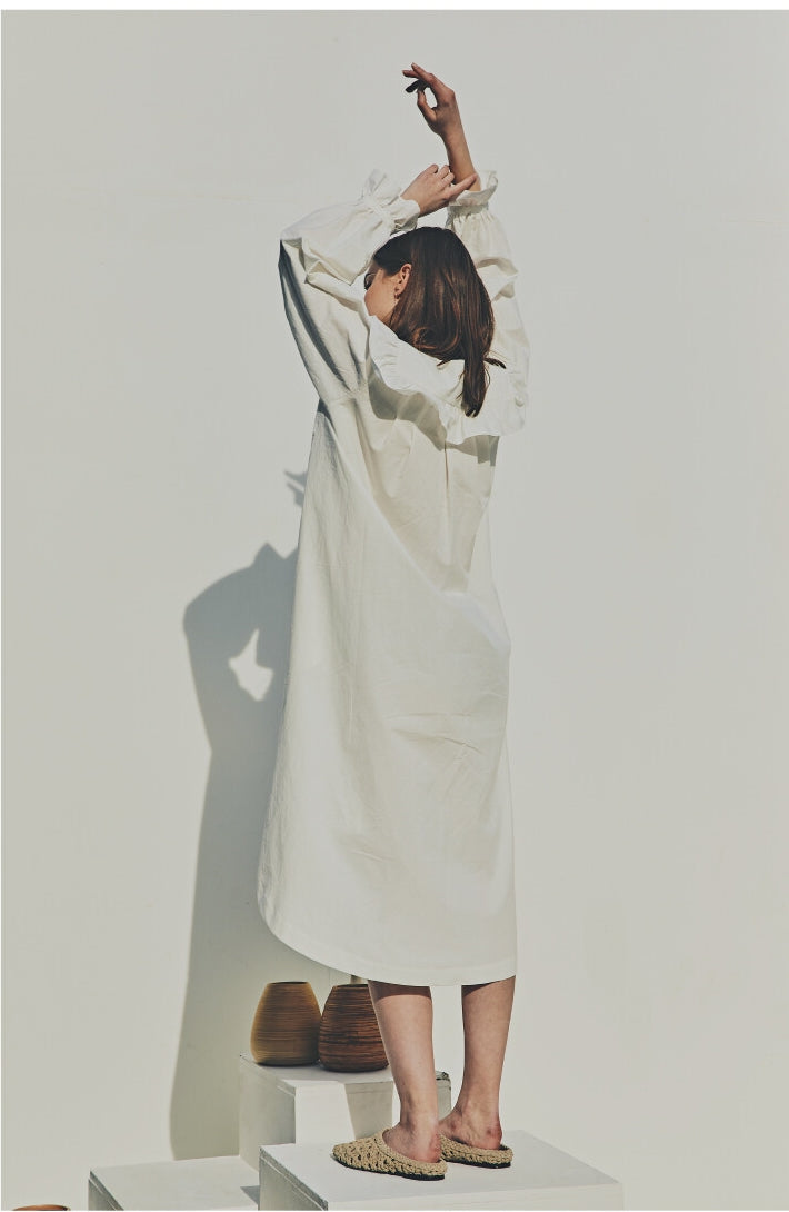 Laura Ren introduces a timeless linen midi dress that blends vintage elegance with contemporary ease. Crafted from breathable linen, this design features a standout oversized ruffle collar, long puff sleeves with elastic cuffs, and a relaxed A-line silhouette. A subtle high-low hem and button-front closure add to the charm, making it a versatile choice for elevated daywear, coastal retreats, or curated wardrobes.