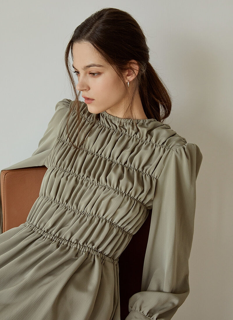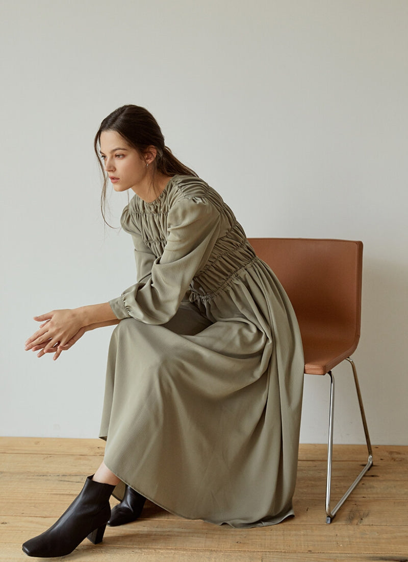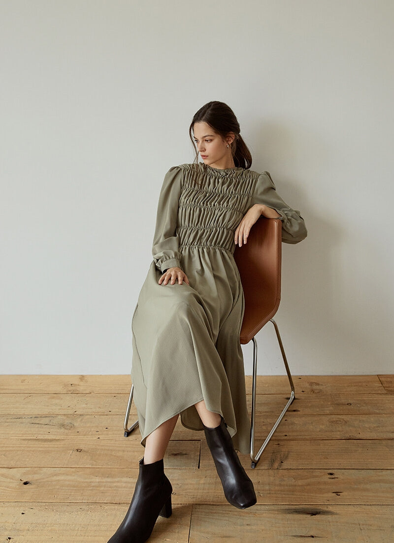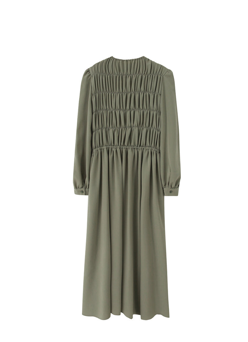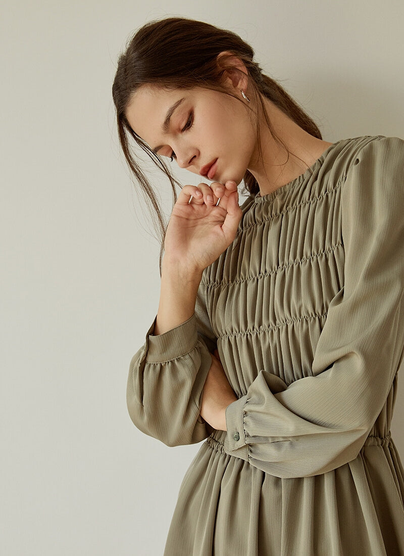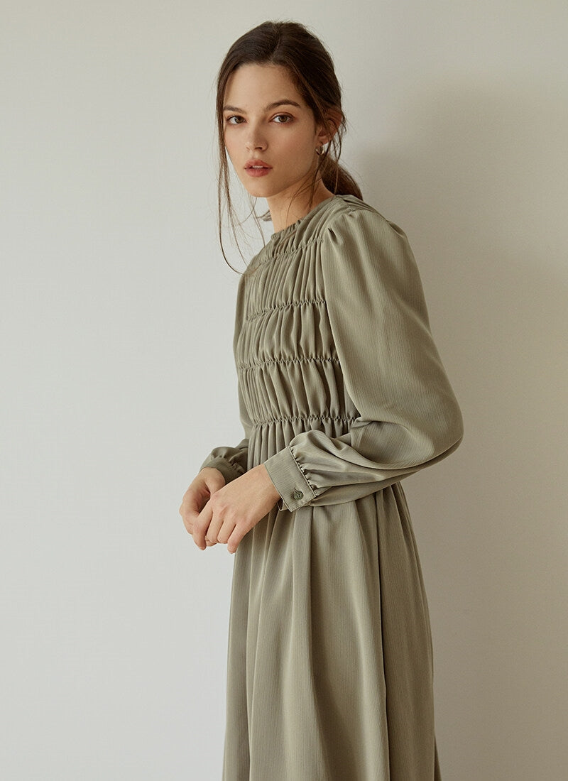 Elevate your wardrobe with this sophisticated linen midi dress by Laura Ren. Crafted from breathable, high-quality linen, this long sleeve dress features an intricately smocked bodice that flatters the silhouette while offering textural elegance. The gently gathered skirt falls with a graceful drape, creating effortless movement and a refined shape. Perfect for daytime events or evening occasions, this versatile piece combines timeless design with modern comfort. The relaxed structure and buttoned cuffs add subtle detailing, making it an ideal choice for those who appreciate both style and substance in luxury fashion.