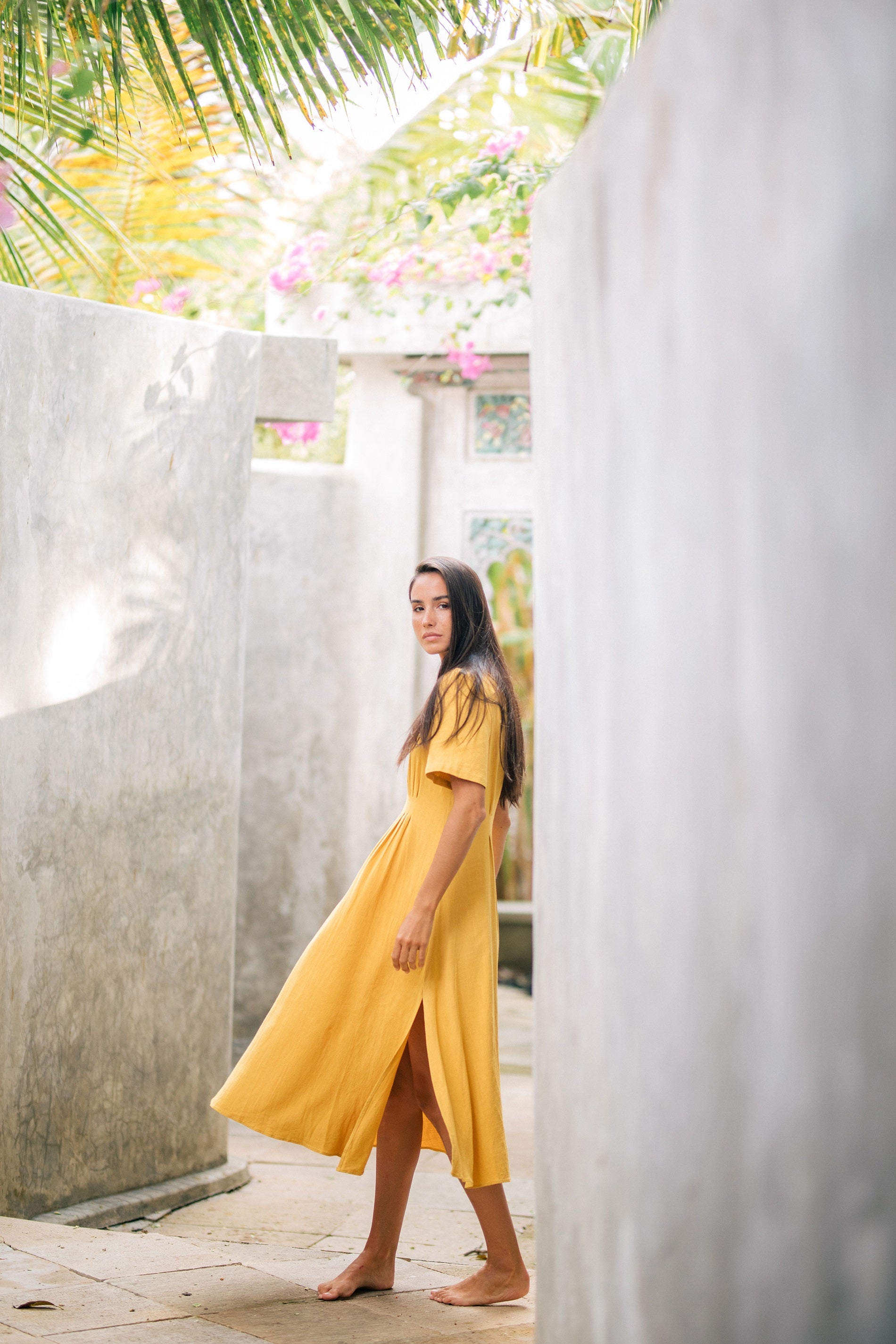 The Laura Ren linen midi dress is crafted from breathable, high-quality linen designed to keep you cool and effortlessly stylish. Featuring a flattering square neckline, gently pleated bodice, and flowing A-line skirt with side slits, this piece brings a sense of relaxed sophistication. Short sleeves and a tailored waist provide a feminine silhouette, perfect for warm-weather getaways or elevated daywear. Whether styled barefoot for the beach or dressed up with heels for a garden soirée, this timeless dress offers comfort, elegance, and versatility in one beautifully made piece.