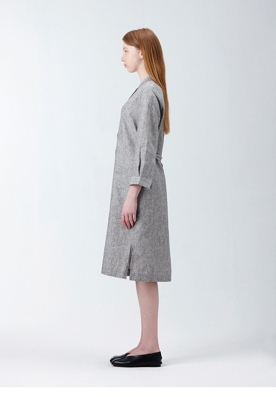 Discover timeless elegance and everyday ease in this natural linen midi dress by Laura Ren. Expertly tailored with a flattering V-neckline and relaxed short sleeves, this dress offers breathable comfort ideal for warm climates and layered styles. The straight silhouette and subtle side slits ensure a flattering drape and freedom of movement. Whether styled for minimalist office wear or casual weekends, this piece embodies refined simplicity and natural texture. Crafted from high-quality linen fabric, it offers durability, comfort, and effortless sophistication — a versatile staple for your elevated wardrobe.