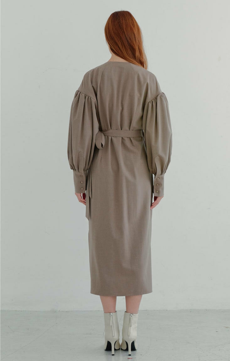 Laura Ren introduces a captivating linen midi dress that fuses modern structure with romantic details. Crafted from breathable premium linen, this wrap-front dress features voluminous balloon sleeves, a deep V-neckline, and elegant draping that flatters the natural form. The midi length and subtle asymmetric hem add dynamic movement, making it a perfect choice for sophisticated daywear or elevated evening occasions.
