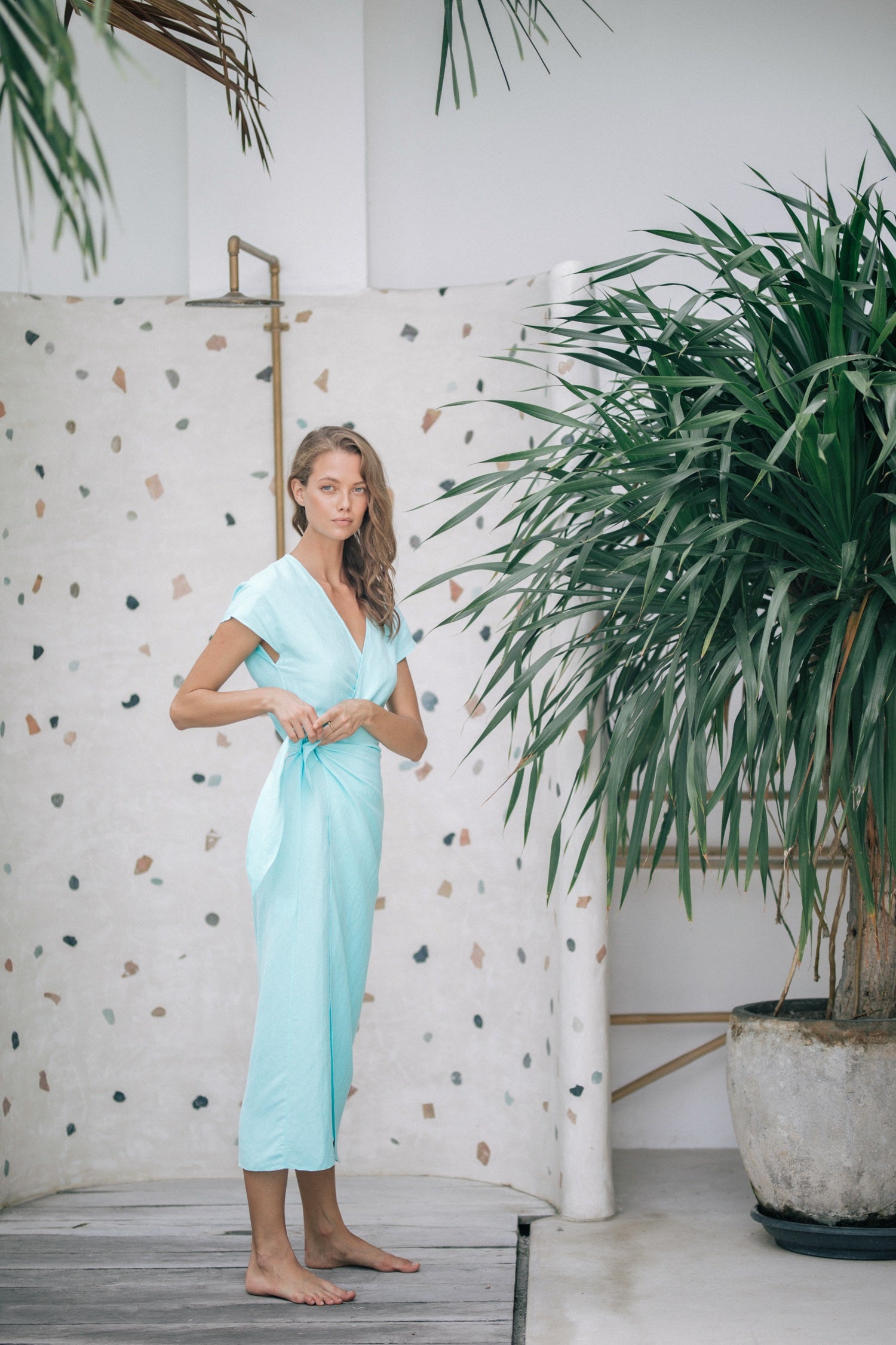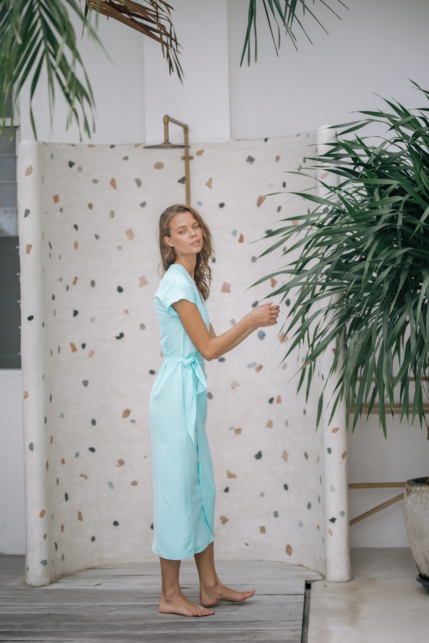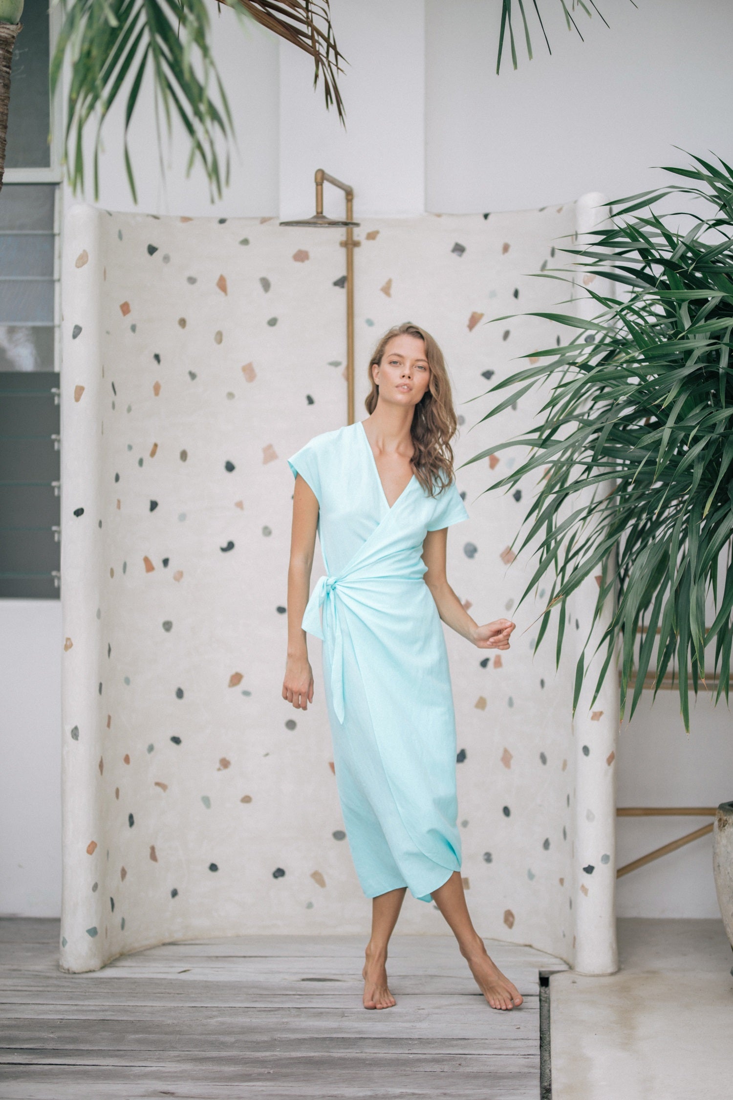 Laura Ren presents a breezy linen wrap dress designed to embrace laid-back elegance and modern femininity. Crafted from breathable premium linen, this dress features a flattering V-neckline, kimono-style short sleeves, and an adjustable side tie that cinches the waist beautifully. The midi length and softly draped silhouette offer graceful movement, making it perfect for resort escapes, coastal brunches, or warm-weather celebrations.