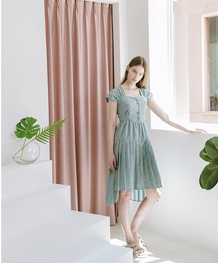This flared midi linen dress from Laura Ren is designed to elevate your warm-weather wardrobe with ease and sophistication. Crafted from breathable, high-quality linen, it features delicate cap sleeves and a flattering square neckline. The bodice is tailored with a row of front buttons and a self-tie waist that enhances the silhouette, while the pleated skirt adds graceful movement. Ideal for daytime elegance or breezy evening outings, this dress combines modern femininity with timeless charm. Whether paired with sandals or ballet flats, the Laura Ren linen dress makes a stylish yet effortless statement.