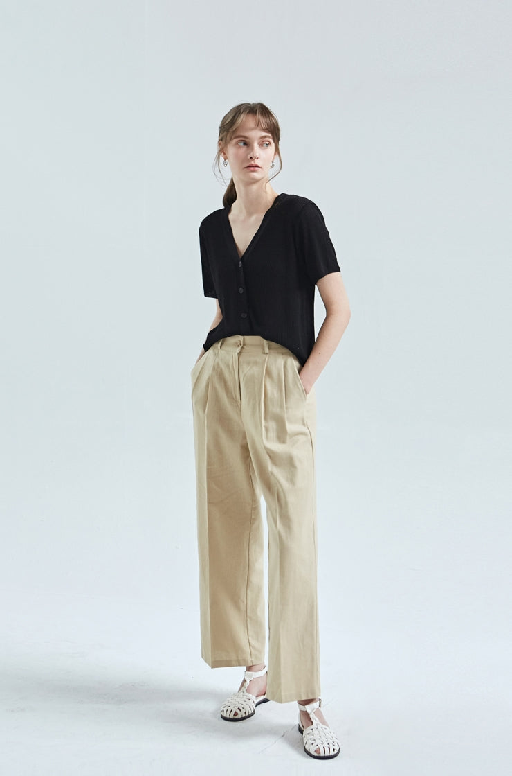 Experience timeless sophistication with these tailored linen pants by Laura Ren. Crafted from a breathable, lightweight linen-blend fabric, these trousers offer all-day comfort and elegance. Designed with a high-rise silhouette, straight-leg cut, and sharp front pleats, they deliver a flattering and elongating fit. The partially elasticated back waistband ensures an easy fit while maintaining structure and style. Ideal for warm weather, workwear, or minimalist everyday ensembles, these linen pants pair effortlessly with both structured blouses and relaxed tops. Laura Ren's signature craftsmanship ensures this wardrobe staple is as durable as it is refined.