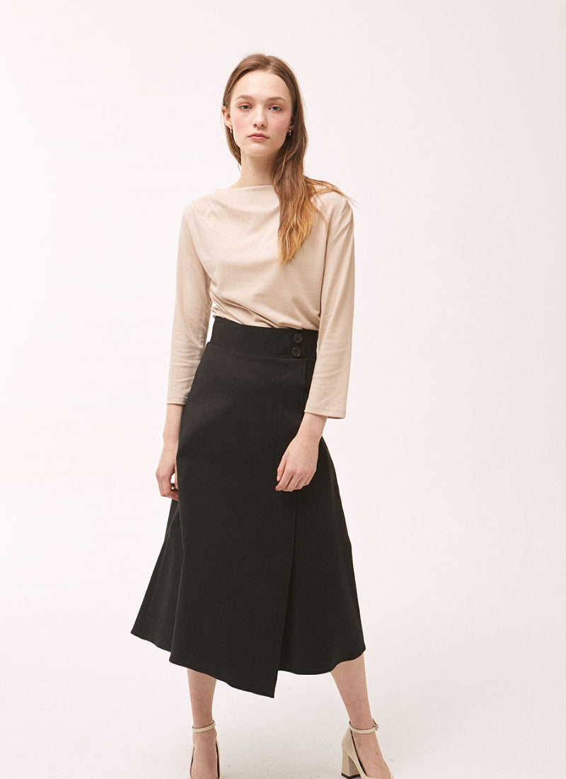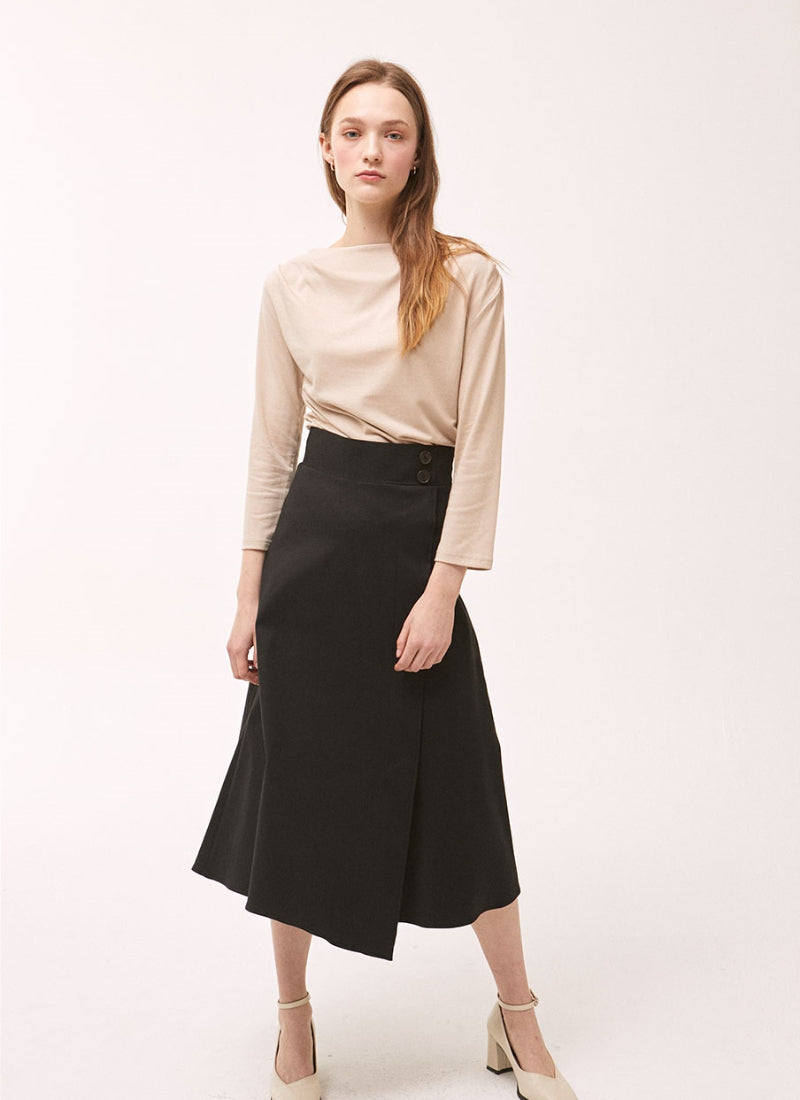 Refined and effortlessly elegant, this high-waisted linen midi skirt from Laura Ren offers a modern silhouette with timeless appeal. Crafted from breathable, lightweight linen, the skirt features a clean asymmetric front overlap secured with minimalist side buttons for added sophistication. The midi length provides graceful movement, making it a versatile choice for both workwear and elevated casual looks. Laura Ren's expert tailoring ensures a flattering fit that complements tucked-in tops or cropped styles. This piece is your go-to staple for creating sleek, polished outfits with ease.