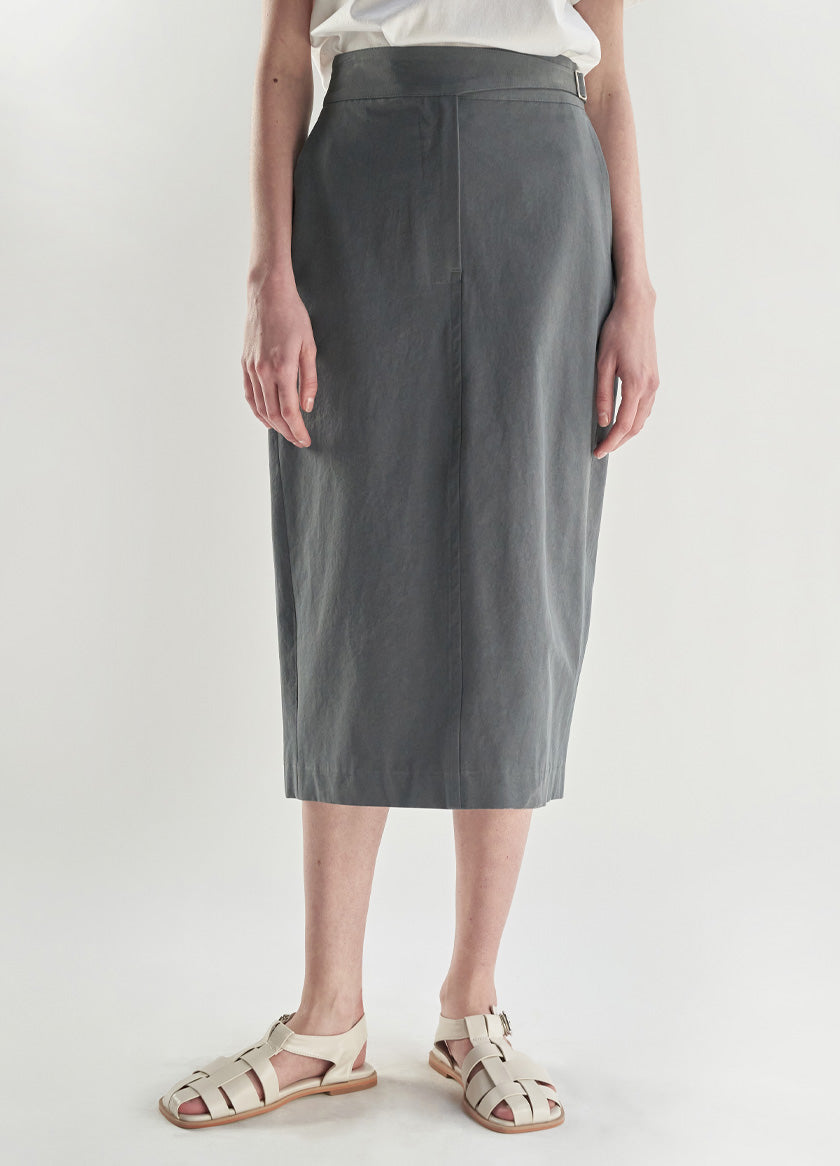 The Laura Ren linen skirt is designed to elevate everyday ease with clean lines and understated structure. Crafted from breathable linen, this high-waisted midi skirt features an adjustable waist tab, sculpting the silhouette with a softly tailored finish. Vertical panel seams enhance its streamlined look while the below-the-knee length adds a polished touch. A concealed side zip ensures a smooth fit, making it an ideal companion to crisp shirting or relaxed knits. With its refined simplicity and durable natural fabric, this piece brings effortless sophistication to warm-weather wardrobes.