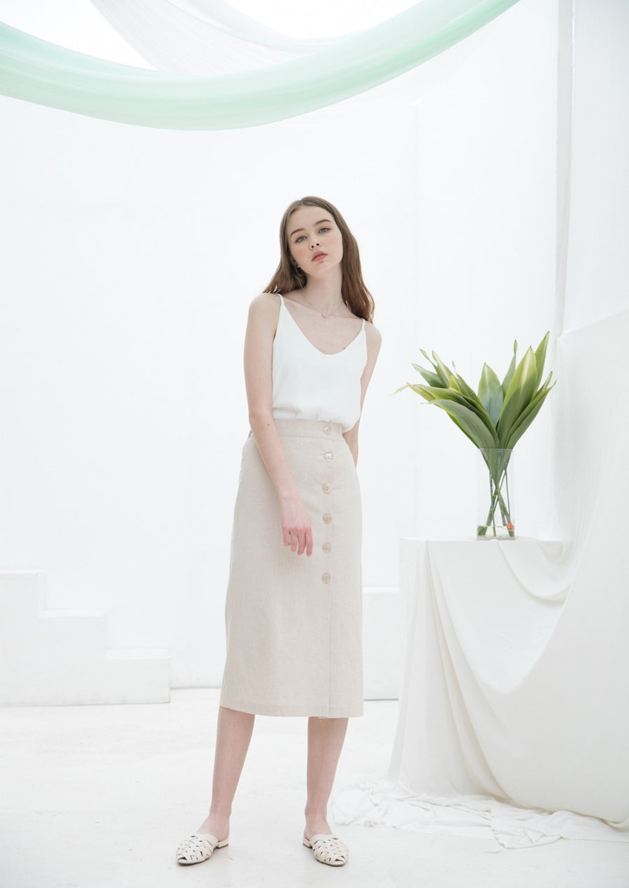 Designed for timeless elegance, this high-waisted linen midi skirt from Laura Ren blends clean tailoring with breathable comfort. Made from premium natural linen, it features a classic button-front design that adds visual interest and versatility. The straight-cut silhouette flatters the figure while offering ease of movement, making it perfect for both casual and refined styling. Its polished look pairs effortlessly with fitted blouses, lightweight knits, or matching linen blazers. With Laura Ren’s signature attention to detail, this skirt is a refined wardrobe essential for everyday sophistication.