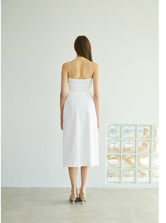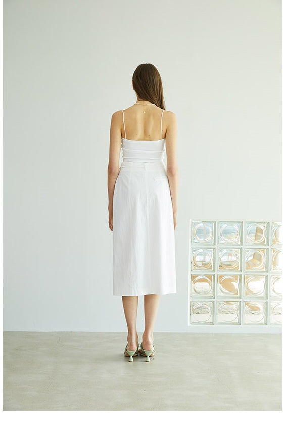 Refined in its simplicity, this high-waisted linen midi skirt by Laura Ren is the ultimate expression of effortless elegance. Made from breathable, structured linen, it features a clean straight cut, subtle center seam detail, and a polished midi length ideal for warm-weather styling. The minimal silhouette allows versatile pairing—from cropped tops to tailored blouses—making it an ideal foundation for a sophisticated summer wardrobe. Laura Ren’s precise craftsmanship ensures both comfort and structure, delivering a timeless essential that transitions seamlessly between casual and polished occasions.
