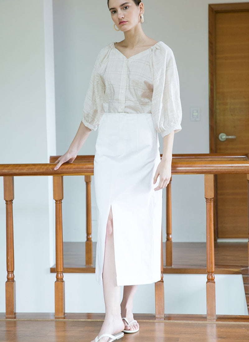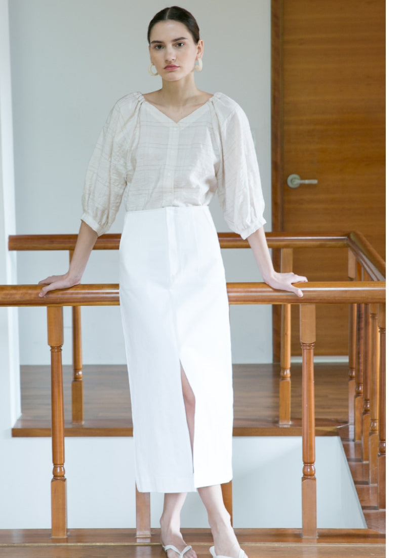 Refined and modern, this high-waisted linen midi skirt by Laura Ren offers a sophisticated balance of structure and softness. Crafted from breathable linen, the skirt features a clean silhouette enhanced by sharp tailoring and a sleek front slit for graceful movement. Its minimal yet elevated design makes it ideal for both daywear and chic evening ensembles. The seamless waistband flatters the figure, while the back closure ensures comfort and ease. Whether paired with a blouse or a fitted tank, this versatile linen skirt elevates any luxury women's wardrobe with timeless appeal and contemporary elegance.