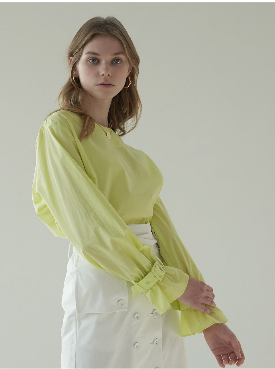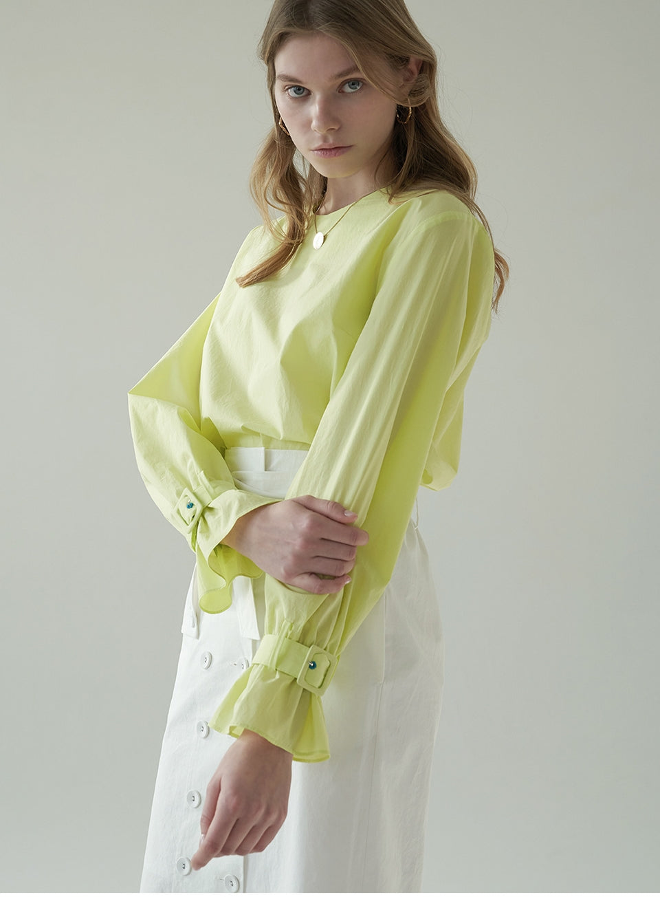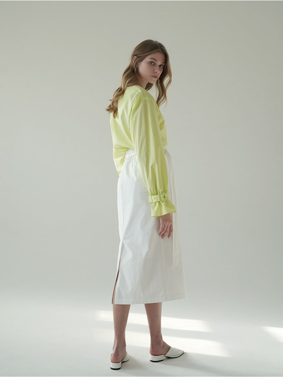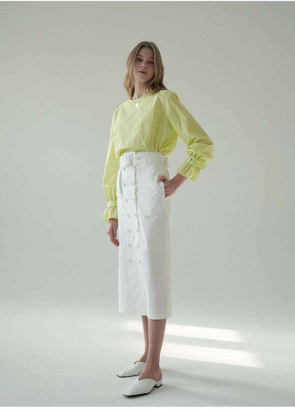 Crafted in crisp, breathable linen, this high-waisted midi skirt by Laura Ren offers a sophisticated update to warm-weather essentials. Featuring a statement wrap-style front with button detailing, a self-tie waist belt, and subtle side slits, this skirt blends structure with fluid femininity. Its tailored silhouette creates a polished yet relaxed look, ideal for both daytime elegance and evening refinement. The natural texture of linen ensures cool comfort, while the design reflects Laura Ren’s signature balance of modern minimalism and timeless chic. A refined staple for the contemporary wardrobe.