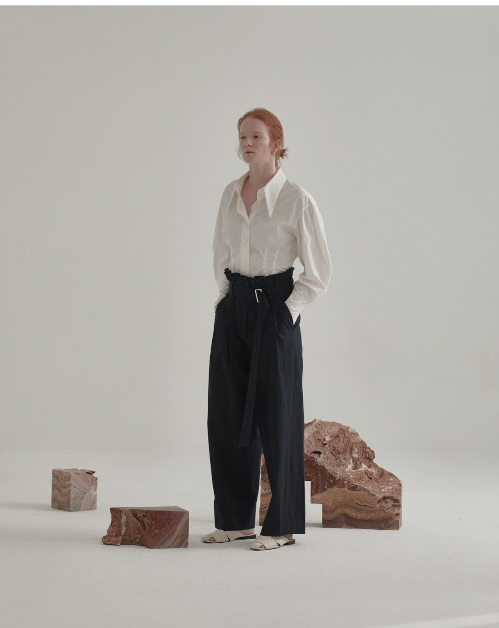 Laura Ren’s high-waisted linen pants blend minimalist structure with timeless tailoring for a refined yet relaxed aesthetic. Crafted from breathable linen, this wide-leg silhouette features a belted waist, pleated front, and tailored darts to create a flattering elongated line. The ankle-grazing length and functional side pockets offer everyday ease while maintaining an elegant flow. These linen trousers are a wardrobe essential for versatile day-to-evening styling. Designed to pair seamlessly with structured blouses or casual knits, they embody the effortless sophistication at the heart of the Laura Ren collection.
