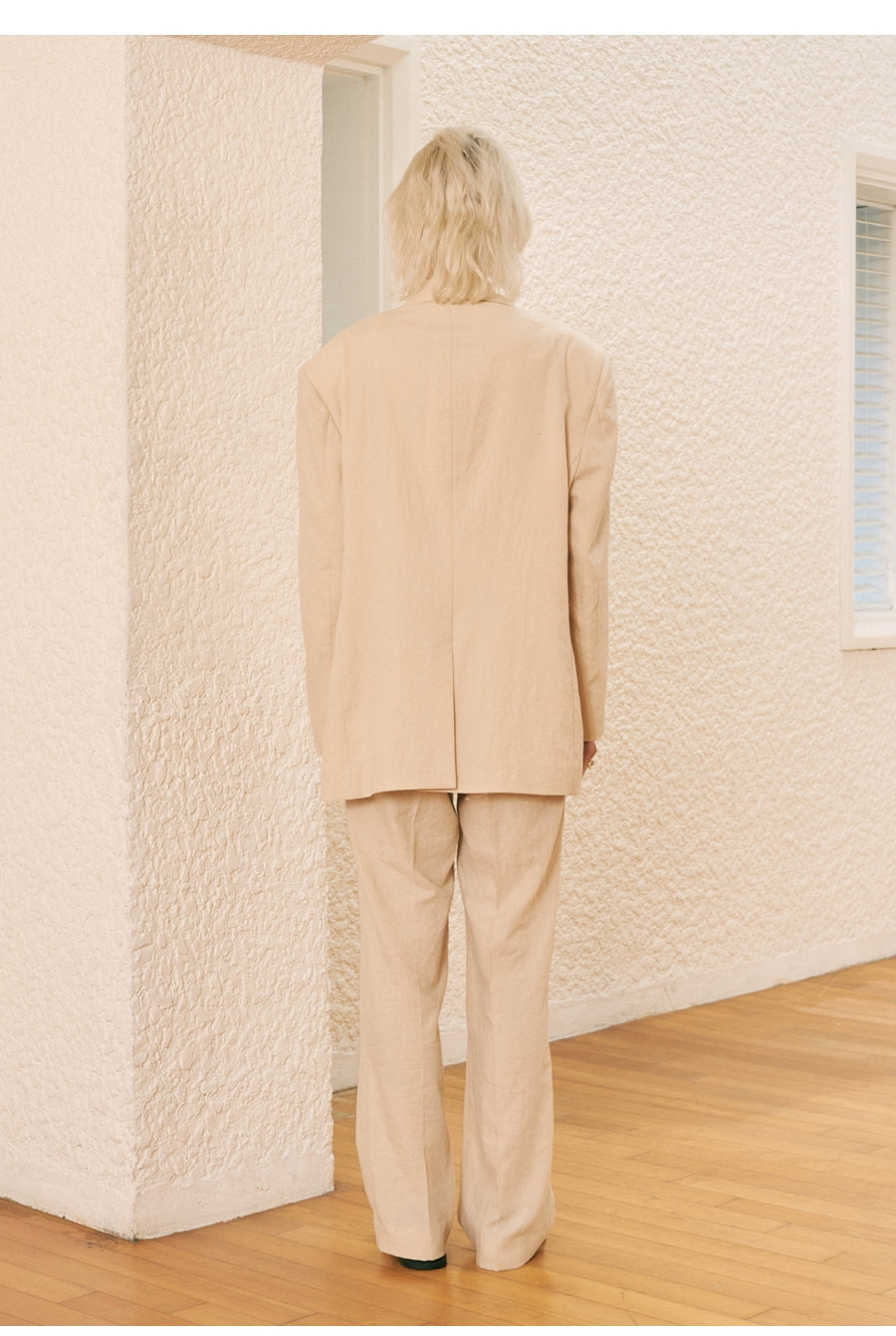 Laura Ren’s tailored linen pants balance softness and structure with a high waist and flowing wide-leg cut. Designed for ease and elegance, they feature clean front lines, minimal detailing, and a long length that pairs beautifully with flats or heeled sandals. Whether worn with the matching blazer or styled separately, these trousers offer an elevated foundation for versatile spring-to-summer looks.