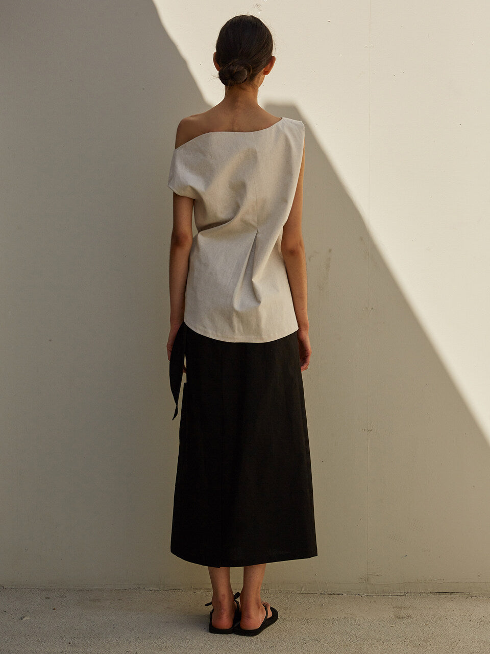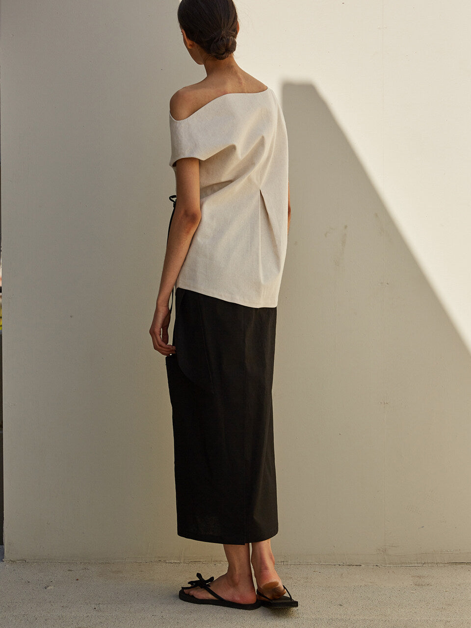 This high-waisted linen skirt by Laura Ren is a timeless addition to any sophisticated wardrobe. Crafted from premium breathable linen, it features a clean A-line silhouette that flows gracefully with every step. A subtle wrap-effect front and functional side pocket lend both elegance and practicality, while the midi length enhances its refined, modern appeal. The minimalist design is perfect for versatile styling, pairing seamlessly with structured tops, oversized shirts, or matching linen blouses. Designed for warm-weather ease and polished everyday wear, this skirt is ideal for resort looks, workwear, or elevated casual ensembles.