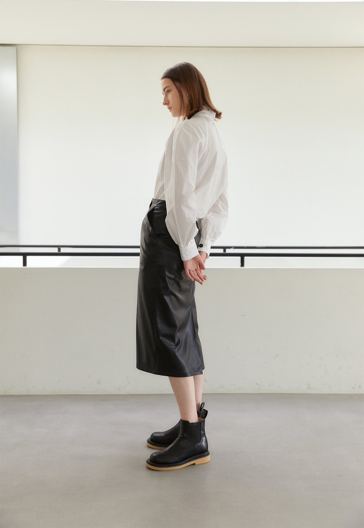Elevate your wardrobe with this timeless leather pencil skirt from Laura Ren, meticulously crafted from premium genuine leather. Designed for the modern woman, this high-waisted silhouette hugs the body for a flattering fit, while the sleek midi length ensures a refined and contemporary finish. With functional side pockets and a clean front closure, this piece combines luxurious texture with everyday wearability. Style it effortlessly with structured shirts or soft knits for a polished, fashion-forward ensemble. Laura Ren brings minimalist sophistication to life through impeccable tailoring and versatile design, making this leather skirt a must-have staple.