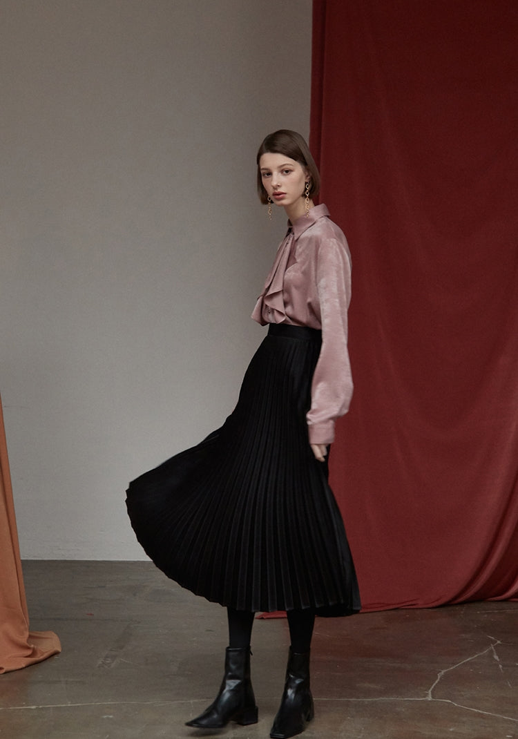 Effortlessly refined, this pleated silk midi skirt from Laura Ren brings timeless elegance to your wardrobe. Crafted from lustrous silk with a fluid drape, the skirt features sharp pleats that create graceful movement with every step. The high-waisted elastic waistband ensures a flattering fit while offering comfort throughout the day or evening. Ideal for pairing with silk blouses, tailored blazers, or knitwear, this versatile skirt transitions seamlessly from daytime sophistication to evening glamour. Laura Ren’s silk skirt is a must-have staple for those who value luxury in everyday essentials.