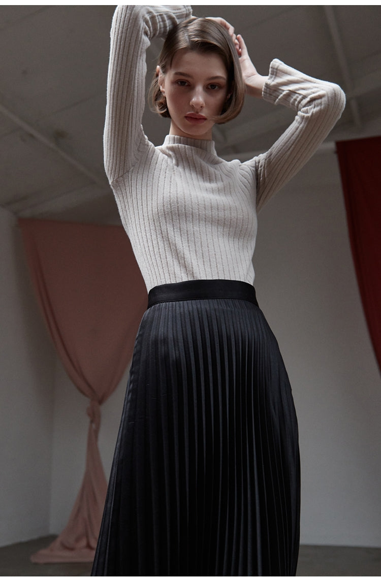Effortlessly refined, this pleated silk midi skirt from Laura Ren brings timeless elegance to your wardrobe. Crafted from lustrous silk with a fluid drape, the skirt features sharp pleats that create graceful movement with every step. The high-waisted elastic waistband ensures a flattering fit while offering comfort throughout the day or evening. Ideal for pairing with silk blouses, tailored blazers, or knitwear, this versatile skirt transitions seamlessly from daytime sophistication to evening glamour. Laura Ren’s silk skirt is a must-have staple for those who value luxury in everyday essentials.
