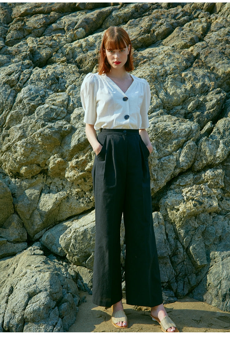 Laura Ren introduces these elegant Linen Pants, a modern wardrobe staple crafted from breathable, high-quality linen. Designed with a flattering high waist and soft pleating, the wide-leg silhouette offers a tailored yet airy feel, perfect for both elevated daywear and refined vacation looks. Functional side pockets and a structured waistband add polish and practicality. These trousers effortlessly combine comfort with sophisticated style, ideal for pairing with linen shirts, blouses, or minimal tanks.