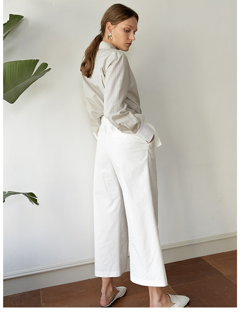 Elevate your wardrobe with these high-waisted wide-leg linen pants from Laura Ren, designed for effortless elegance and all-day comfort. Crafted from premium, breathable linen fabric, these pants feature a structured silhouette with clean tailored pleats and a chic belted waistband that defines your figure. The cropped length adds a modern edge, making them perfect for both professional and casual styling. Laura Ren's design blends timeless sophistication with contemporary detail, ensuring a versatile piece that transitions seamlessly from desk to dinner. These linen trousers are the ultimate staple for refined, fashion-forward wardrobes.
