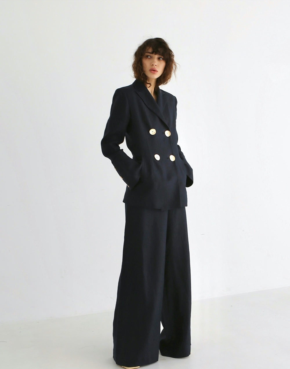 Elevate your wardrobe with these high-waisted wide-leg linen pants from Laura Ren, crafted for effortless sophistication. Made from breathable, premium linen, these tailored trousers feature a structured silhouette with deep front pleats, a striking gold-tone button closure, and a floor-grazing hem for dramatic impact. Perfect for both elevated daytime looks and refined evening styling, these pants offer a flattering fit that elongates the frame. Pair them with sheer blouses or structured tops for a chic and polished finish. The impeccable construction and lightweight comfort make them an essential staple in the Laura Ren collection.