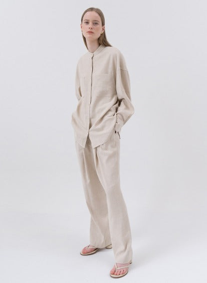 The tailored linen pants from Laura Ren are the epitome of effortless elegance and refined comfort. Crafted from premium linen, these full-length trousers offer a breathable feel perfect for warm-weather styling. The high-rise waist and wide-leg silhouette create a flattering, elongated shape, while subtle front pleats and side pockets enhance the minimalist appeal. Whether paired with a tucked-in blouse or a relaxed shirt, these pants deliver versatile sophistication suitable for both office and weekend settings. Elevate your seasonal wardrobe with this timeless staple from Laura Ren, blending modern tailoring with breathable luxury.